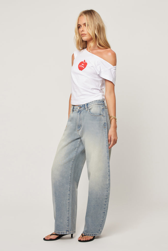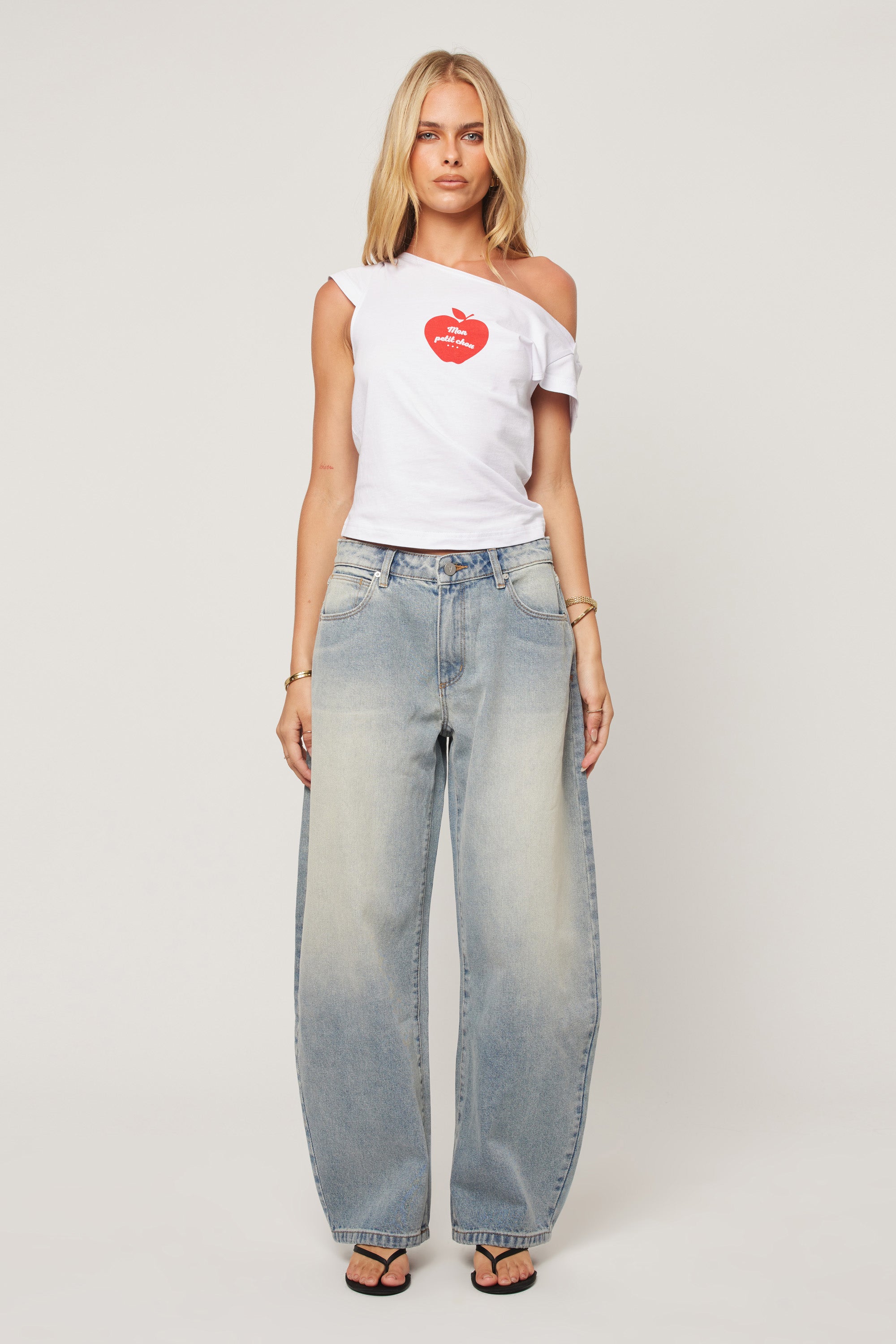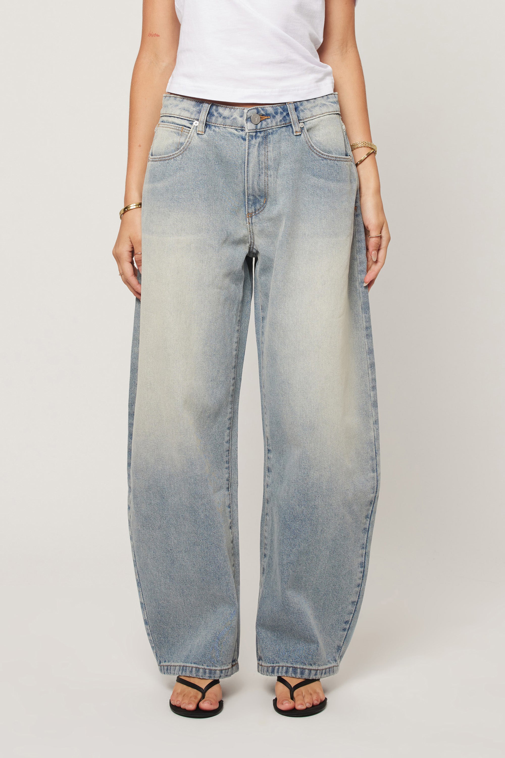 The ABRAND 95 Barrel Featuring a mid-rise waist that sits just below your belly button, these light vintage blue jeans make statement style look easy. With their relaxed fit around the butt and thighs and distinctive bowed leg shape that finishes just below the ankle, these jeans are perfect for styling up or down. Designed with mid-weight rigid indigo denim, theyll mould to your body over time for a fit that only gets better with wear