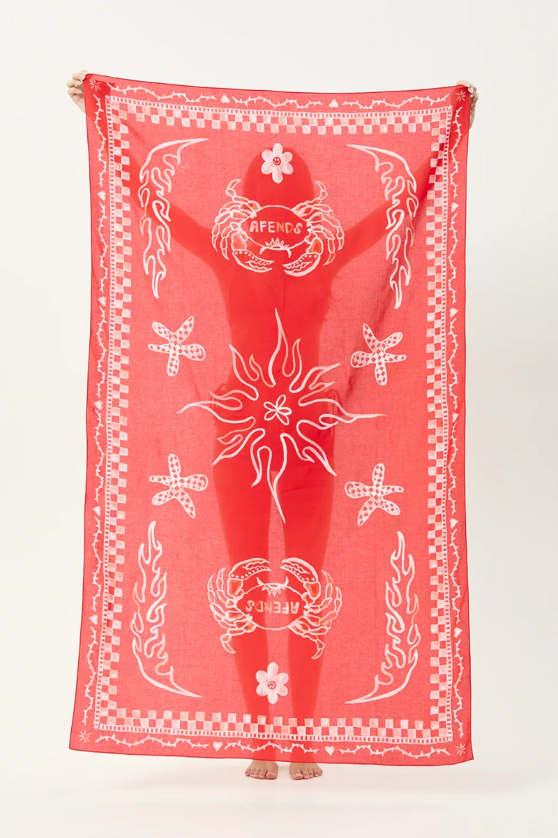 The 'Calda' sarong, made from 100% organic cotton voile, is lightweight, soft, and breathable. Its versatile design makes it perfect for the beach, poolside, or as a stylish everyday wrap.