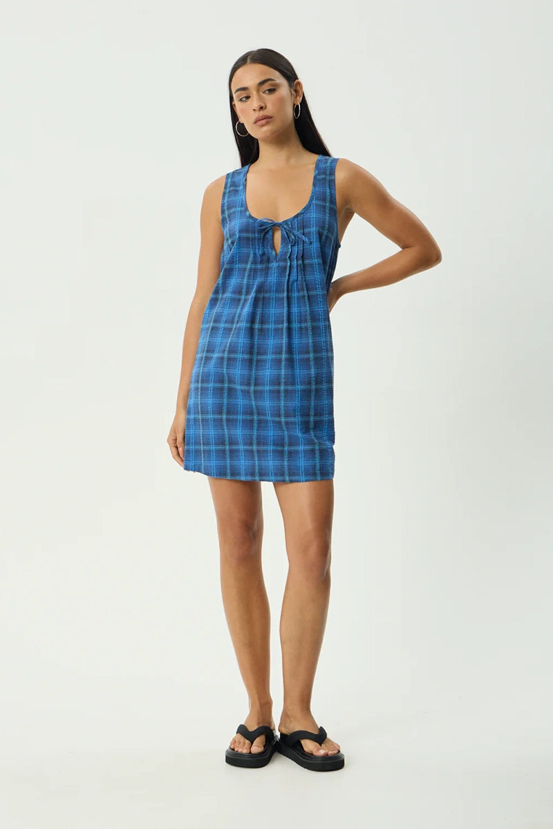 Continuing our use of sustainable, lightweight organic cotton seersucker, now in a custom yarn dyed woven Marina Check for our Camden Collection. This mini dress is designed with a boxy fit, scooped neckline and keyhole tie front with pin tucks.