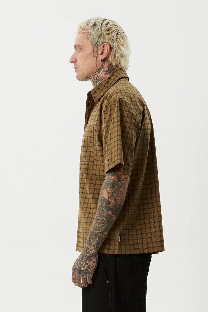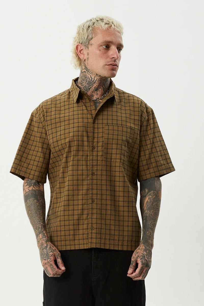 Designed with a boxy fit and custom yarn dyed check, the 'Challenger' short sleeve shirt brings a laid back edge to classic shirting. Finished with a traditional collar and left chest pocket, it’s lightweight and easy to wear.