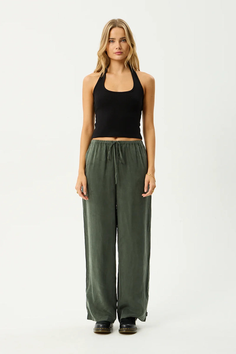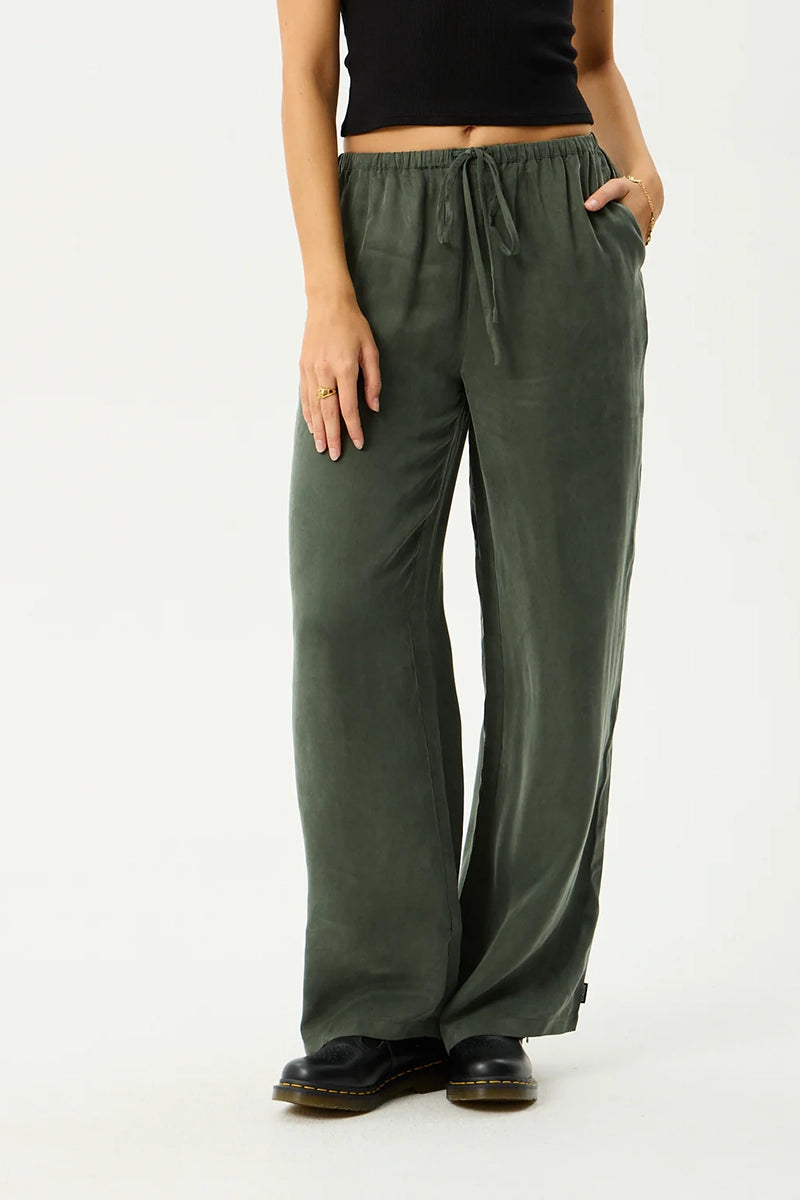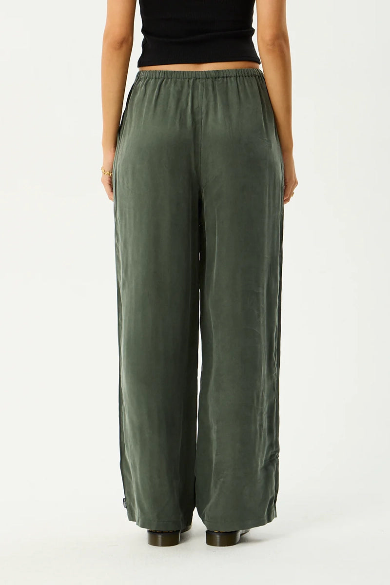 The 'Gerry' wide leg pant is designed with a relaxed fit and mid-rise waist, finished with an elasticated waistband and outer drawcord. Slash opening side pockets add practicality, cut from a sustainable silk alternative made with a cotton pulp blend.