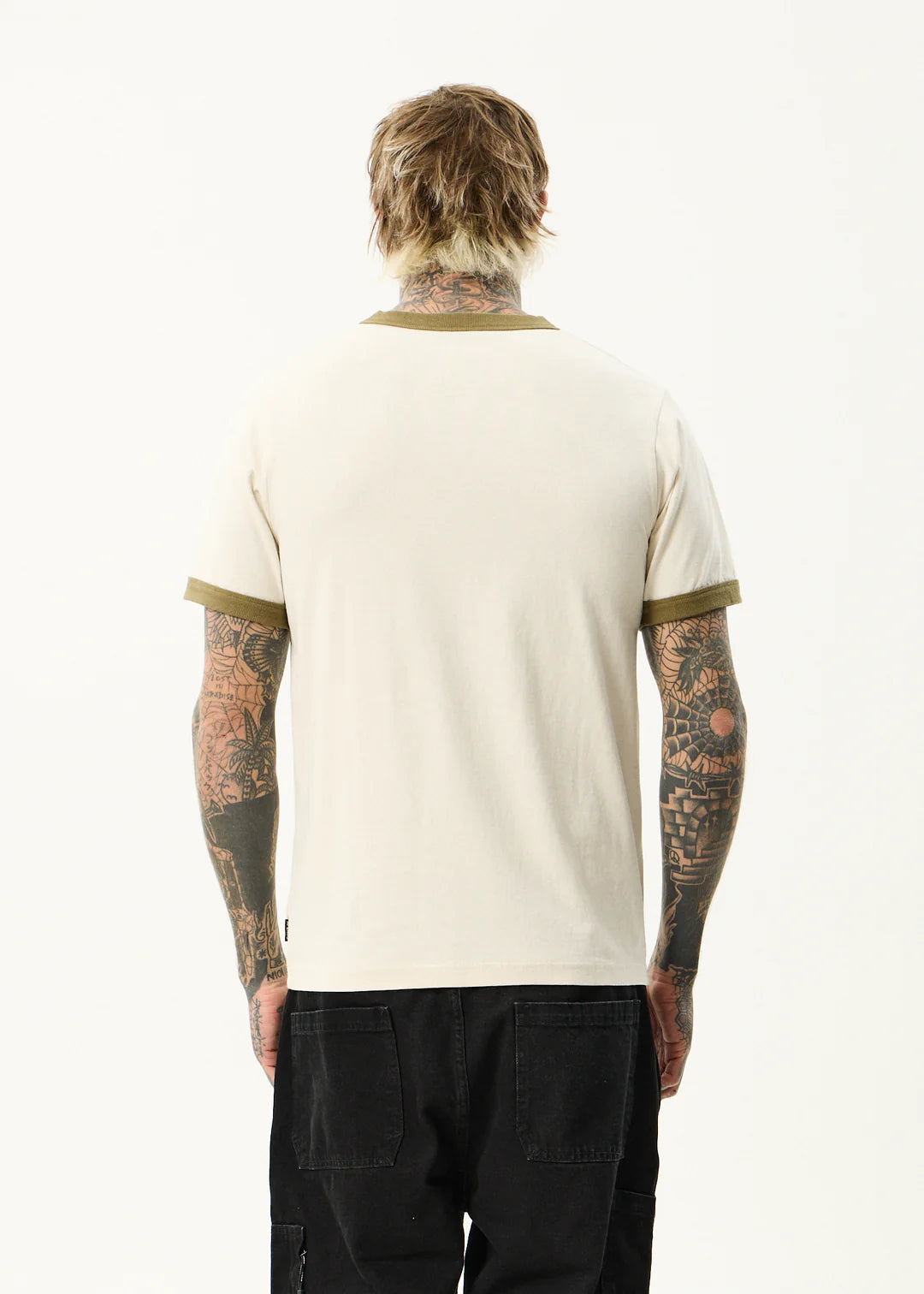 The 'Mix Up' ringer tee is designed with a regular fit and dry hand feel, bringing a '70s vintage-inspired look with contrast ribbing on the neck and sleeves, finished with puff print and embroidery.