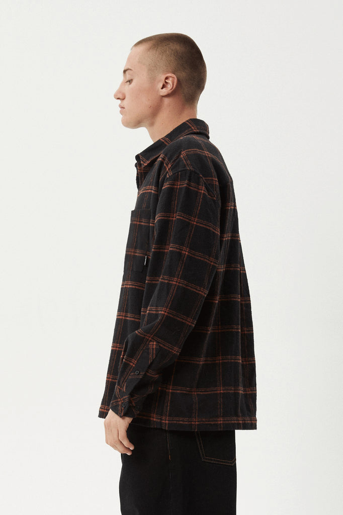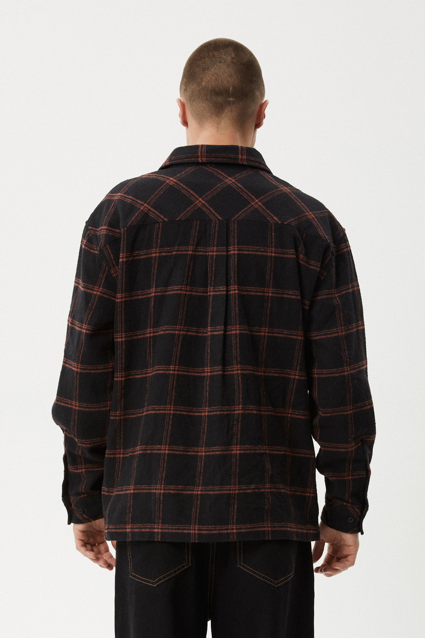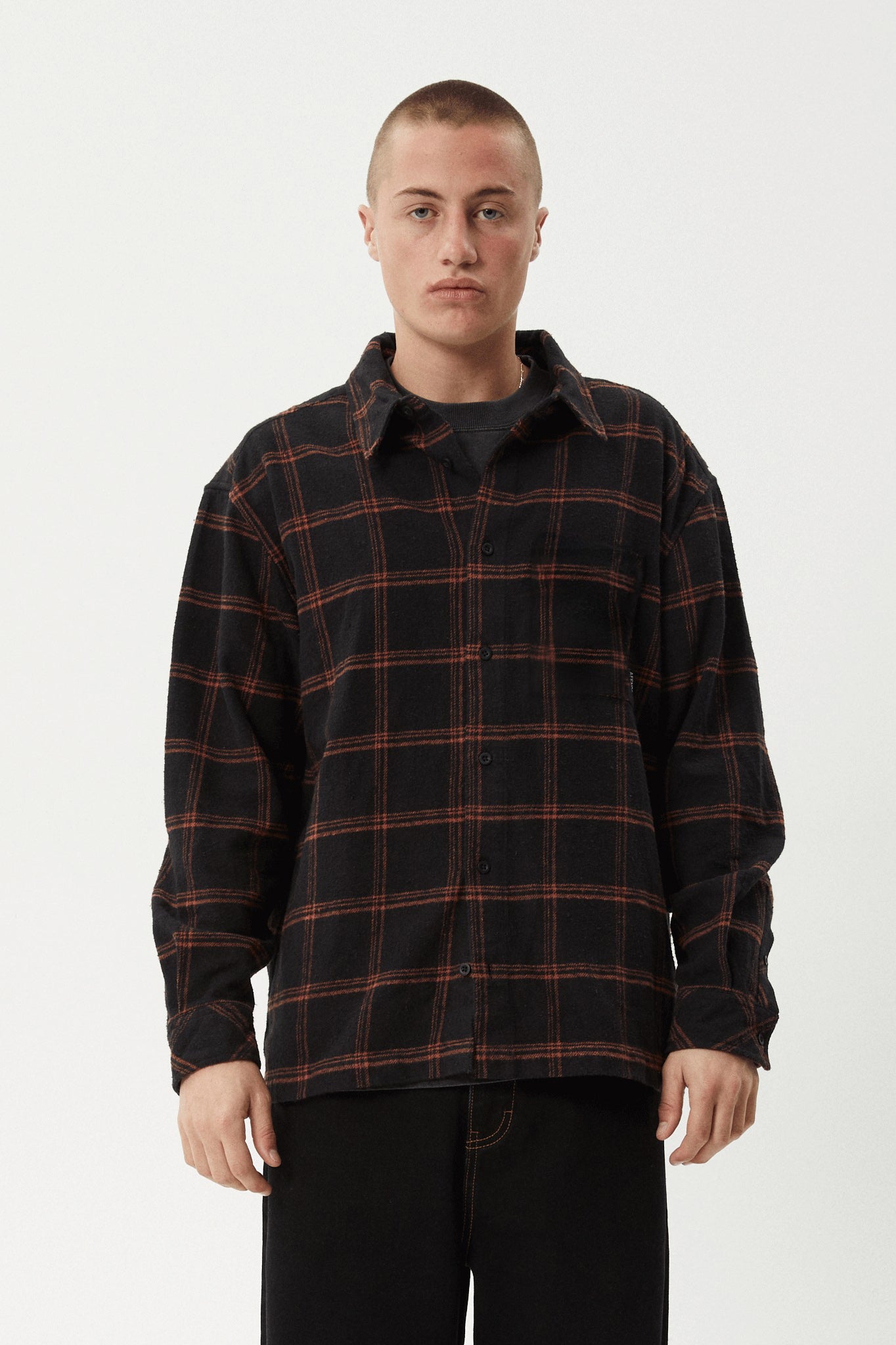 This men's flannel shirt offers a boxy fit, button-up front, tapered arms, and a traditional collar for a classic look. Crafted from a soft and heavyweight, 100% recycled cotton and polyester blend.