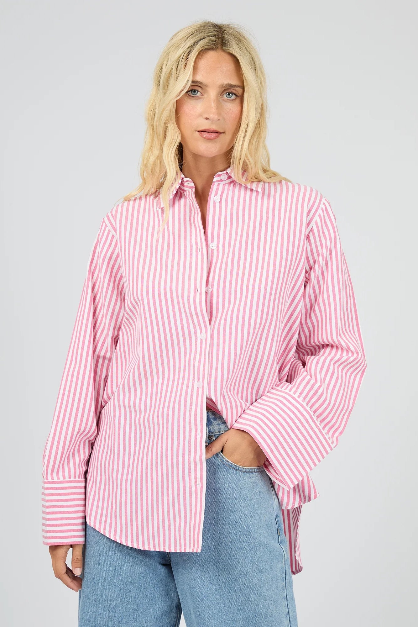 An oversized stripe shirt is a summer staple. Cute with jeans or shorts or wear it open over togs at the beach.