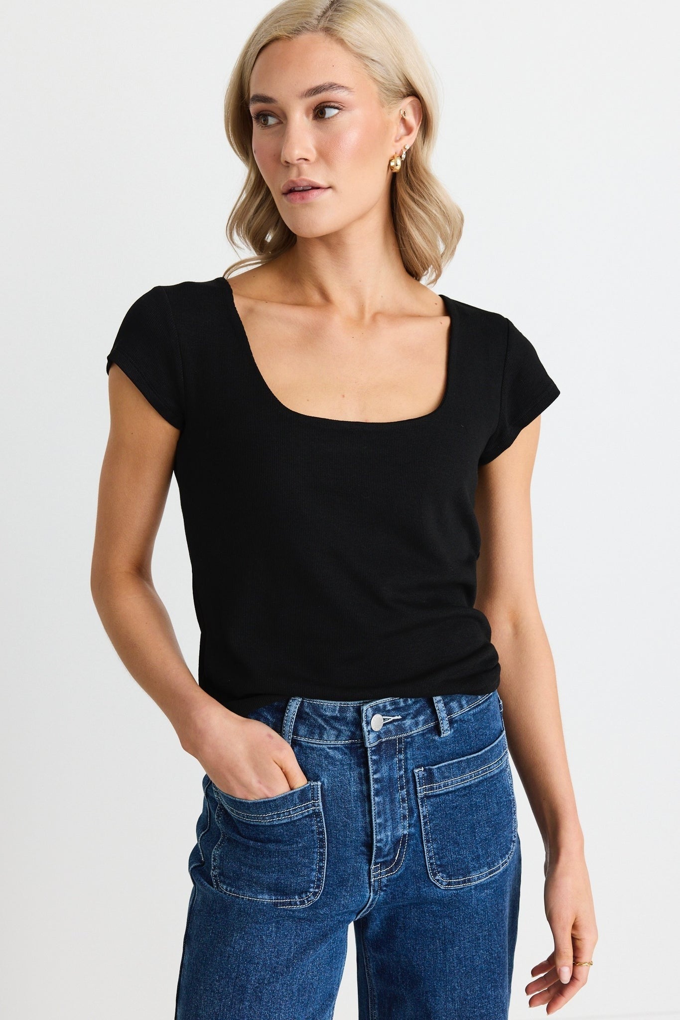 The Definitive black square top is made of soft stretch knit fabric and will keep you comfortable and stylish all day long. The perfect staple for your capsule wardrobe. This style runs large so we recommend sizing down.