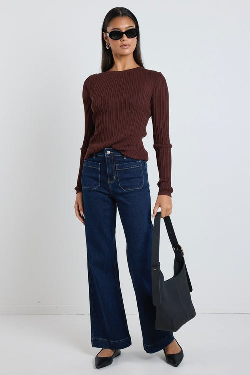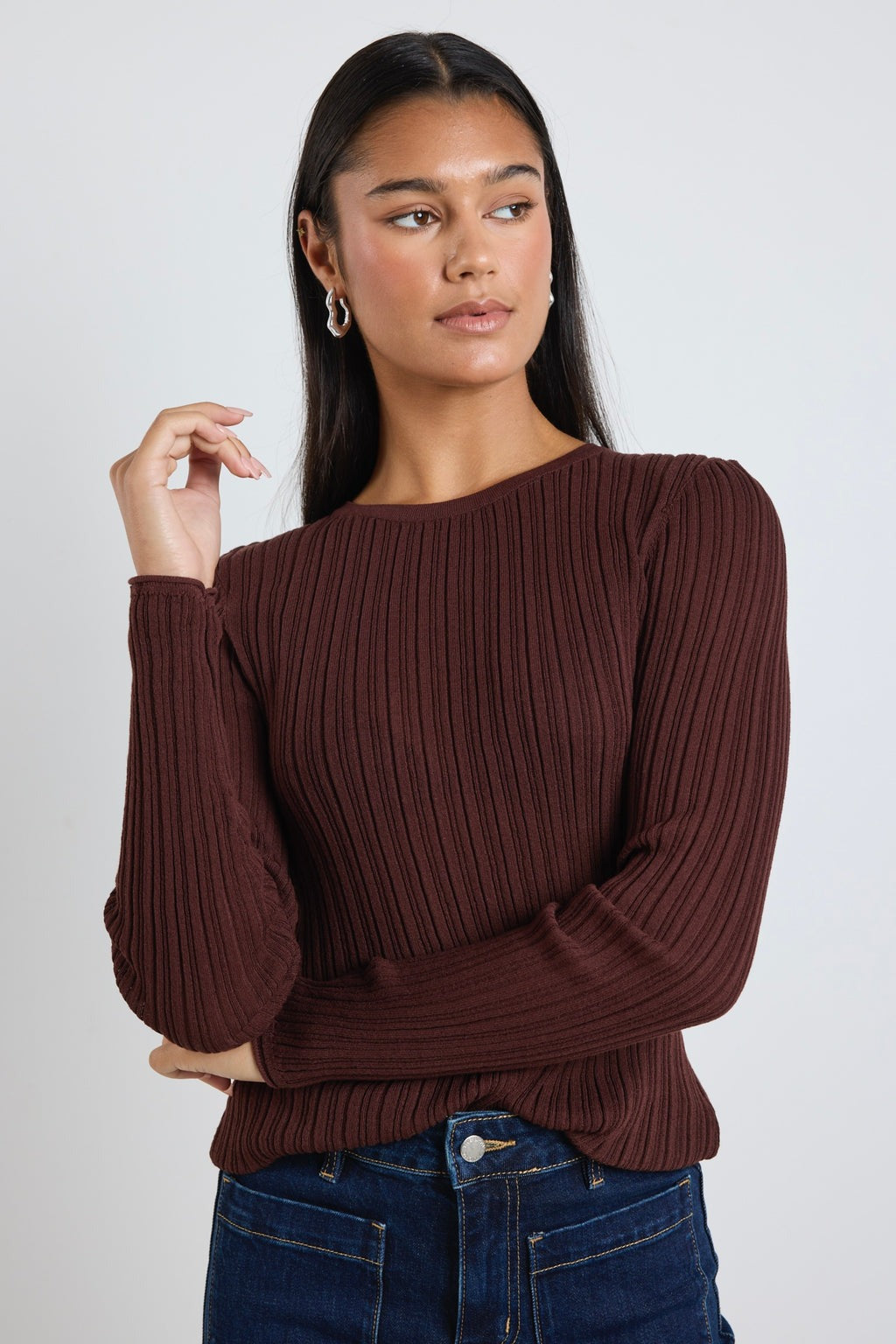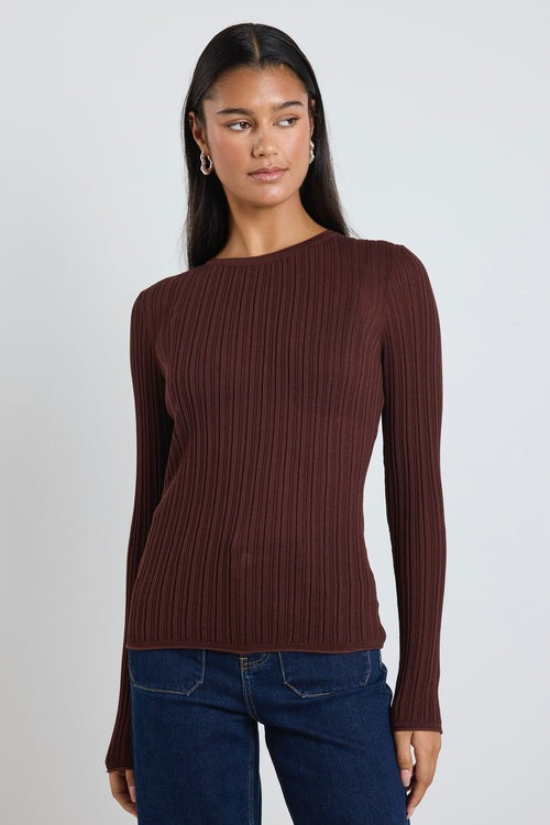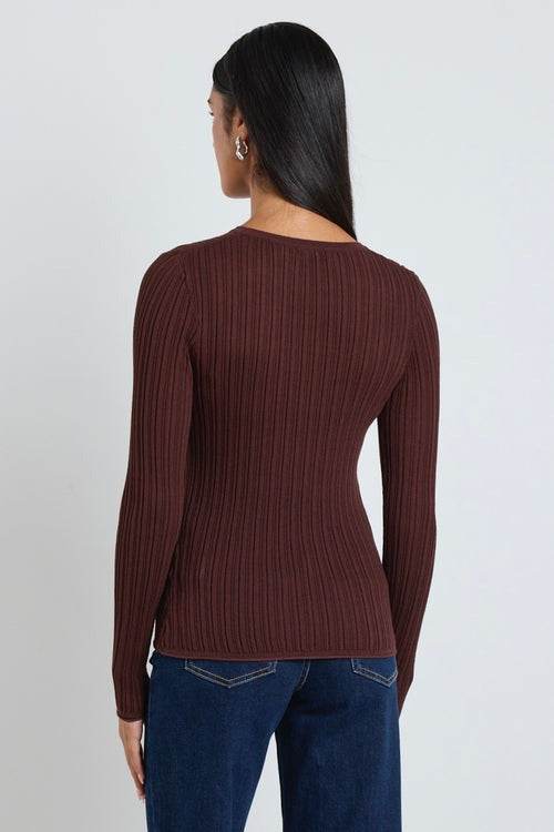 Indulge in effortless elegance with the Fragment Chocolate Knit Top – a chic essential for every wardrobe. Its rich chocolate hue adds warmth and depth, while the ribbed texture beautifully flatters your silhouette. Designed for high-low dressing, this top effortlessly transitions from day to night – pair it with denim for a casual look or style it with tailored trousers for a more refined ensemble.
