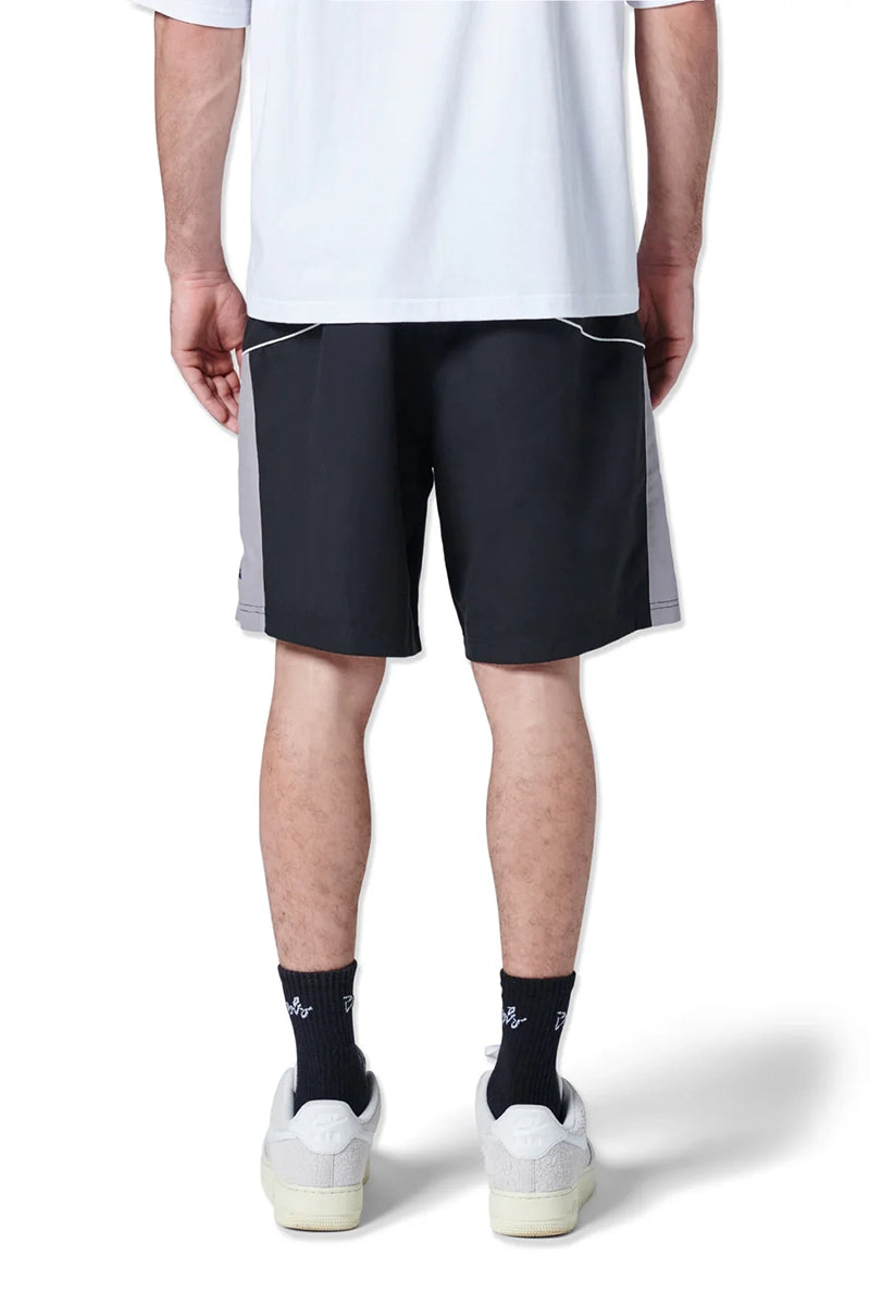 The Ace Short. Lightweight sport short, inspired by 80's running shorts. Custom panelling and piped seams. Thigh screen print logo. Elastic waist with internal drawcord.