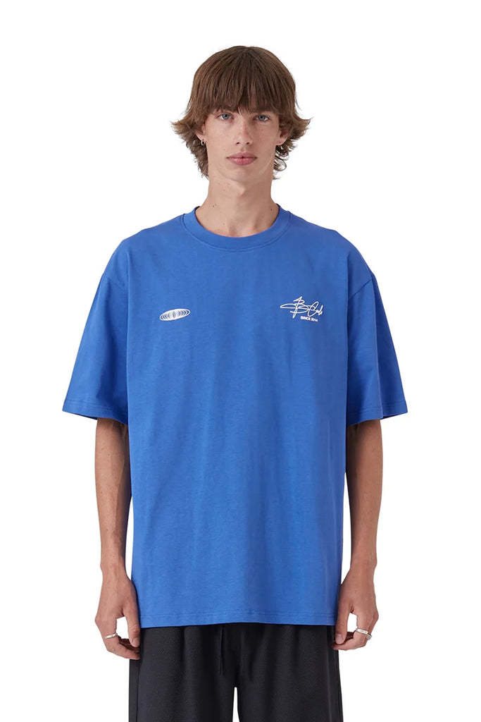Relaxed, boxy fit with a thicker neckline. Cut from heavyweight 260g cotton for a vintage-inspired feel. Finished with a light puff print graphic for subtle texture.