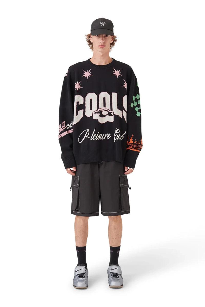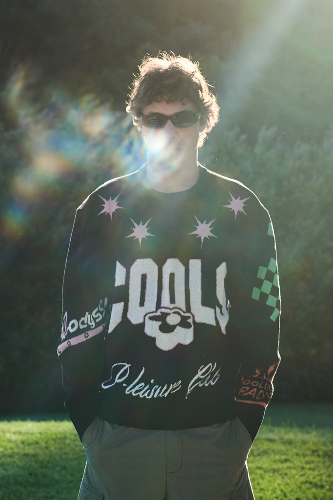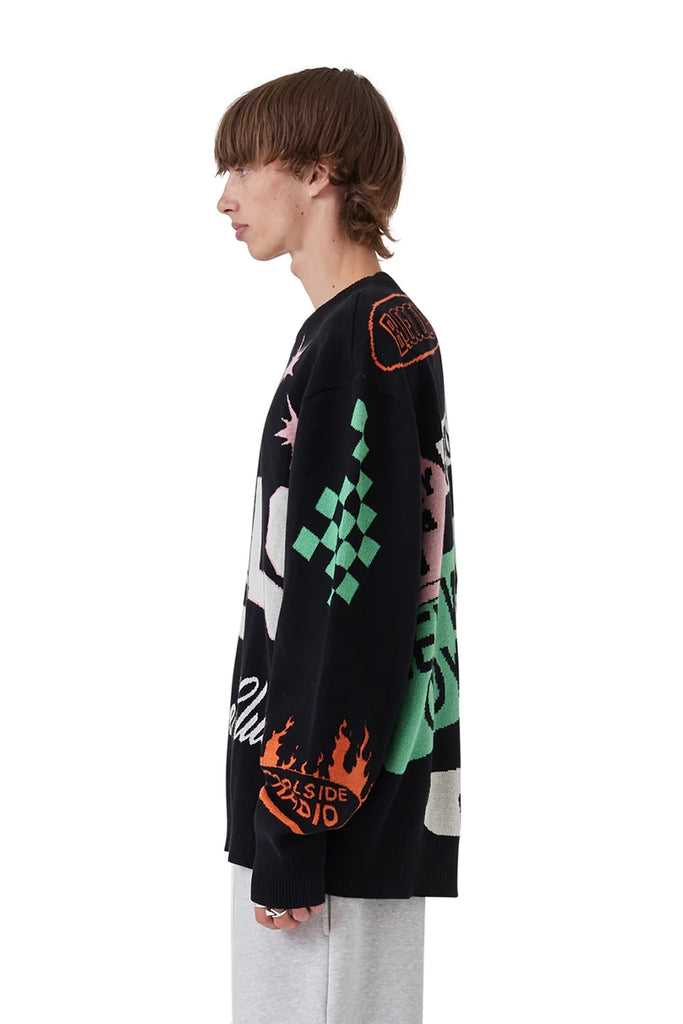 Custom machine-knitted sweater with scattered logo detailing. Fit is oversized. Size down if you prefer a more classic fit, order normal size if you like fit as per model.