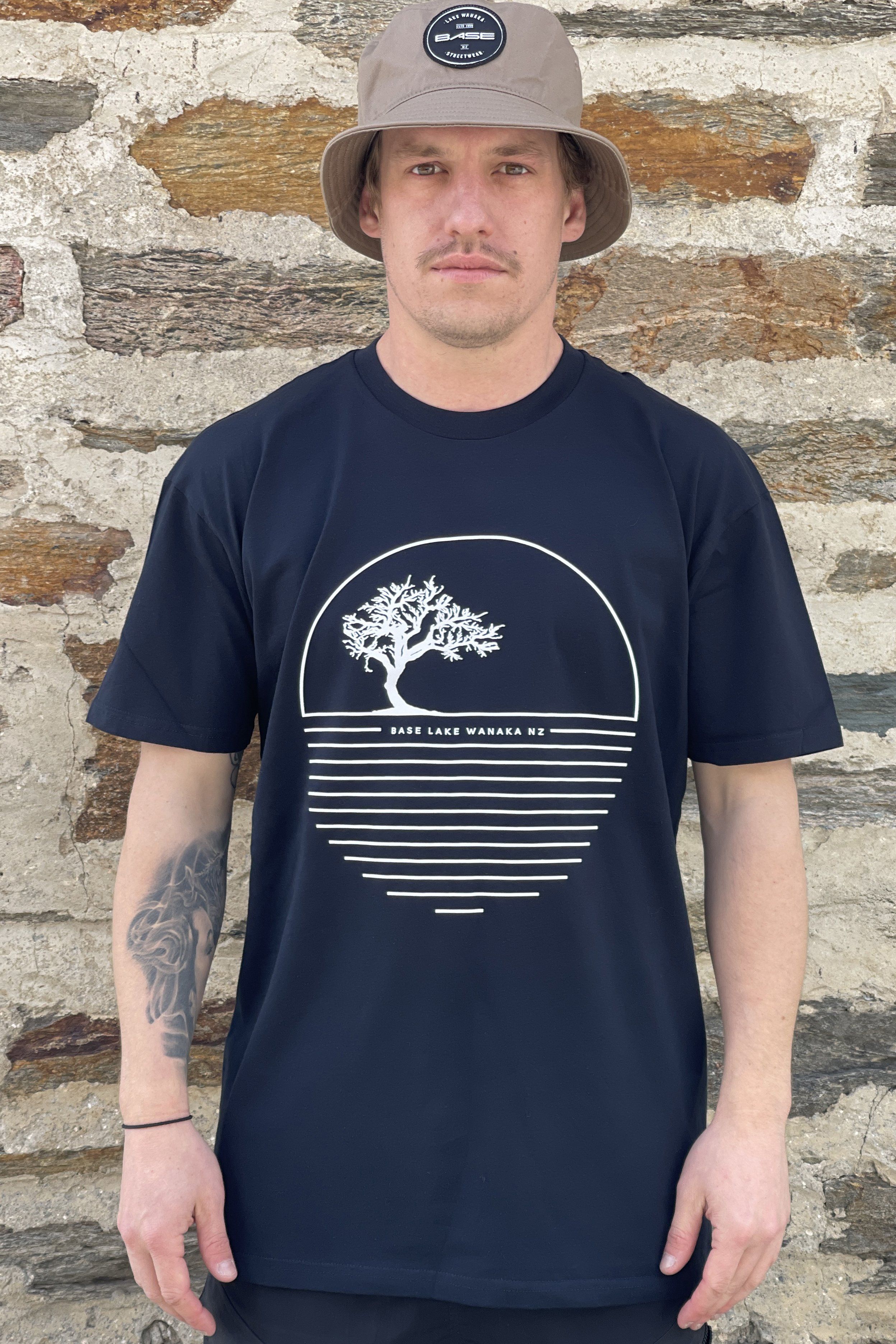 BASE Wanaka Tree Stencil Tee Mens Navy