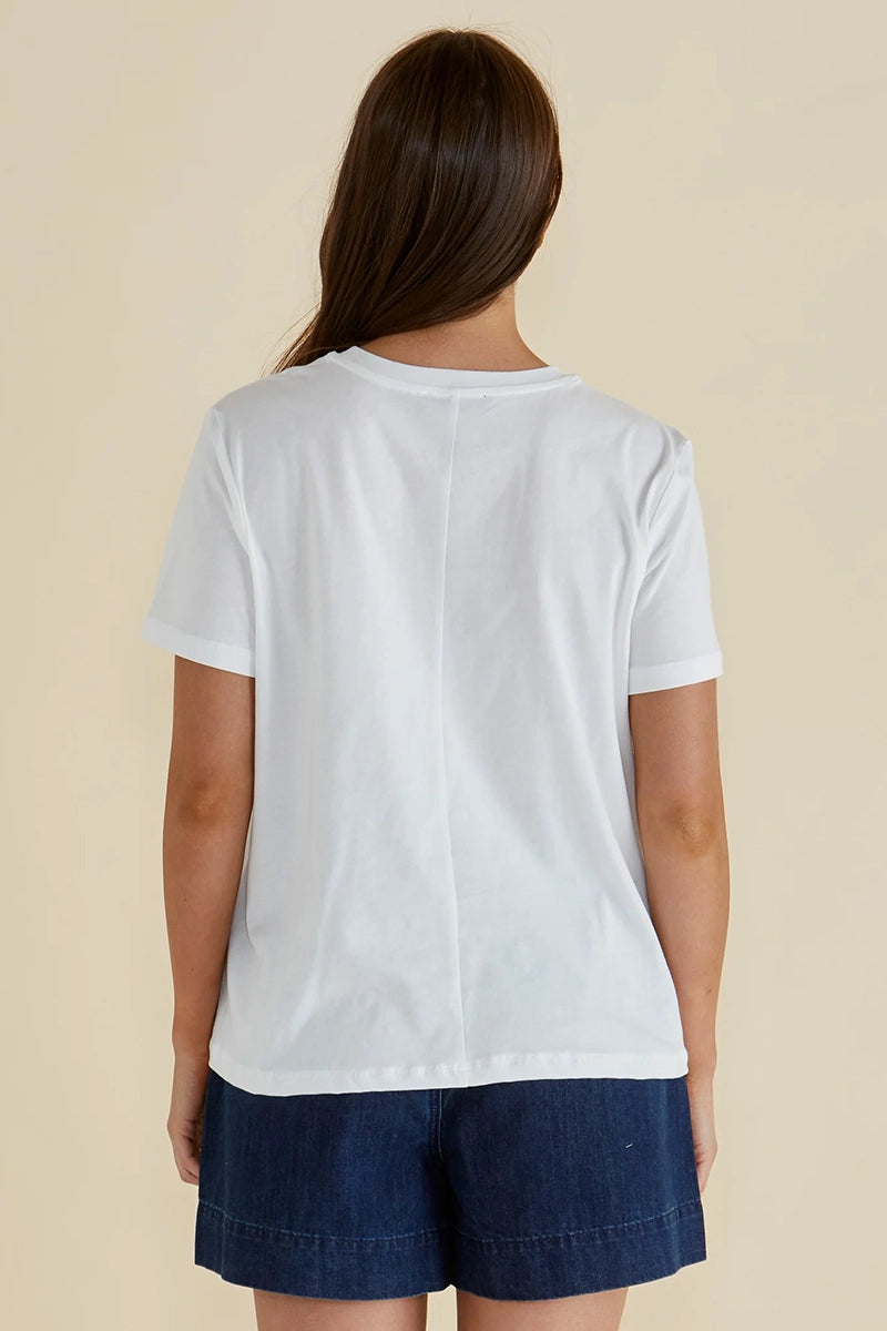 The Ellia Crew Tee offers an effortless, oversized fit crafted from soft cotton jersey. Featuring a crew neck and drop shoulder sleeves, it's designed for easy layering or solo wear. With a slight high-low hem, this tee provides a comfortable, classic silhouette that works beautifully across transeasonal looks.
