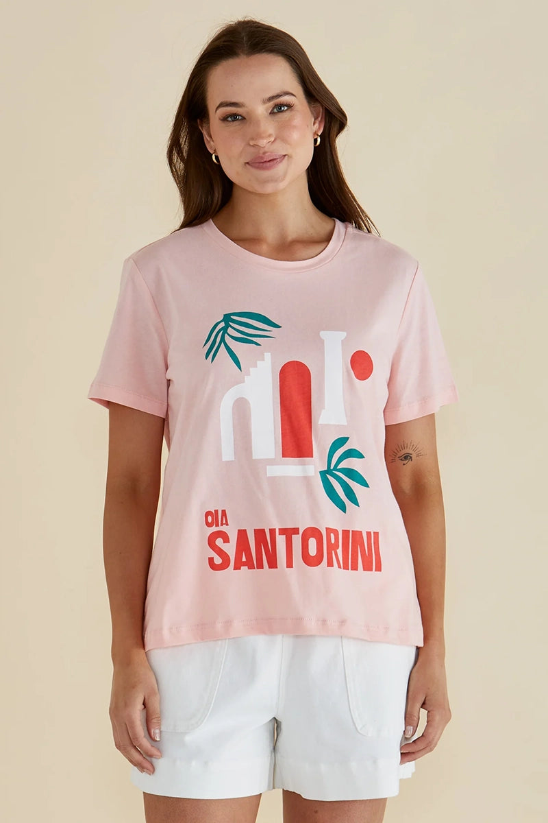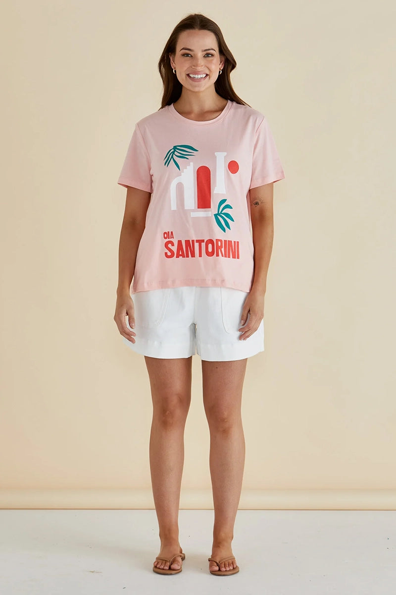 BETTY BASICS Ellia Crew Tee Santorini Print Pink