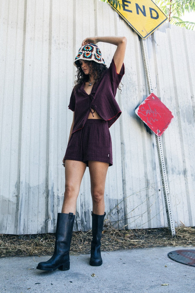 This breezy tie top is the versatile piece you'll be reaching for all season long. Relaxed FitModel Size: Alexa is 5'8" (172.72 cm) and wears size Small The Brixton Wandering Tie Top is this season's answer to effortless warm-weather style. Made from 100% cotton, this top has that perfect relaxed, easygoing fit that plays nice with everything from your favorite shorts to a flowy skirt or classic jeans. We love the playful tie detail at the front—it adds just the right touch of feminine flair. With short sleeves and cool contrast tipping on the hem and cuffs, it has thoughtful little details that make it stand out. 22" Hps130Gsm Cotton Yarn Dyed Double ClothCenter Front Tie ClosureContrast Tipping