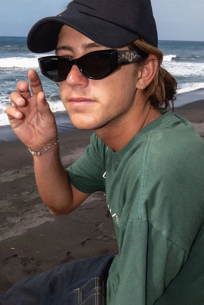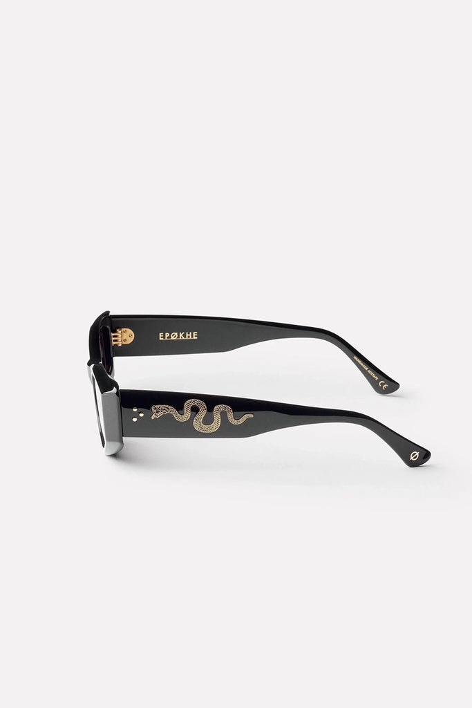 Meticulously handcrafted from premium bio-acetate, the Guilty is both durable and sustainable, derived from bio-acetate for a lightweight yet sturdy feel. The temples adorn EPOKHE’s signature snake graphic, a not-so-subtle detail that reflects the brand’s raw and uncompromising aesthetic.