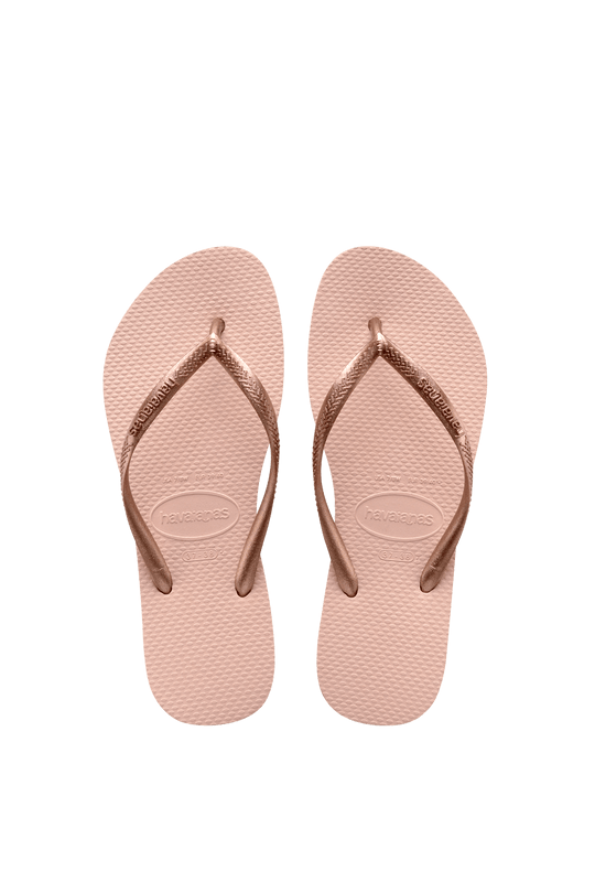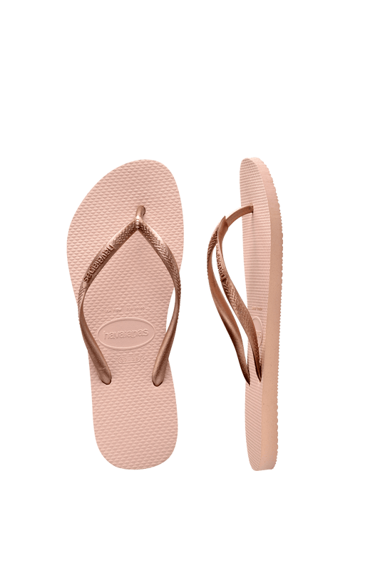 Havaianas classic everyday style! Featuring a skinny metallic strap and bouncy, durable plain rubber sole.