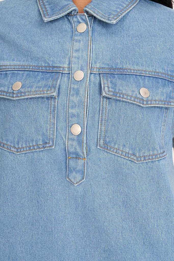 • What you need to know: 100% Cotton, 11oz Huffer custom denim, A-Line minidress, branded tack buttons, patch pockets and side pockets, classic shirt collar with Huffer branded woven label