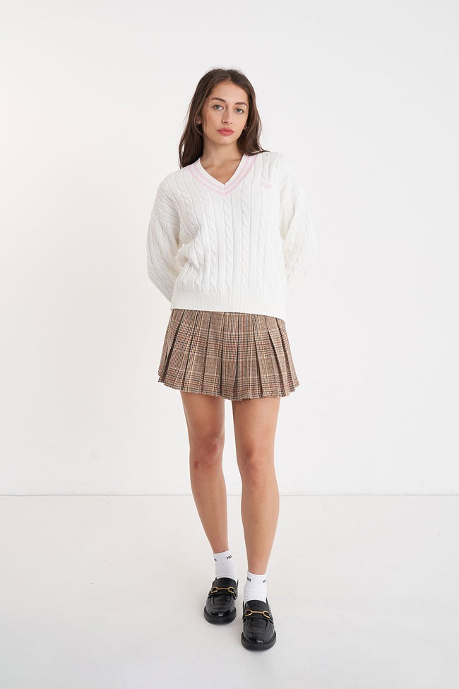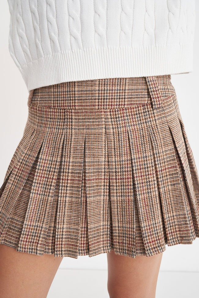 Since 1997 Stay a "headder" the game in 90%, Polyester 10% Wool / 250gsm / Mini length pleated skirt / Mid rise / Tailored waistband with wide beltloops