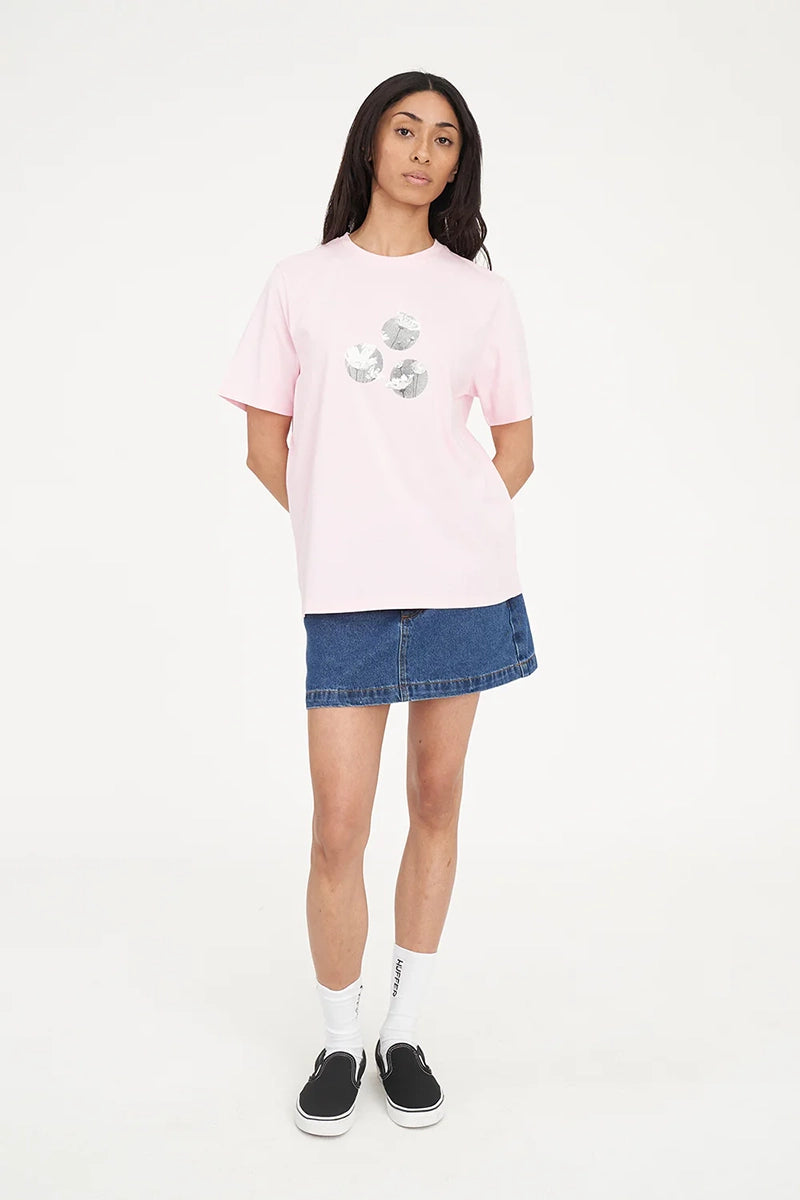 A twist on the classic Huffer 3Ball Logo Tee. The softness pink with cute as buttons flowers.