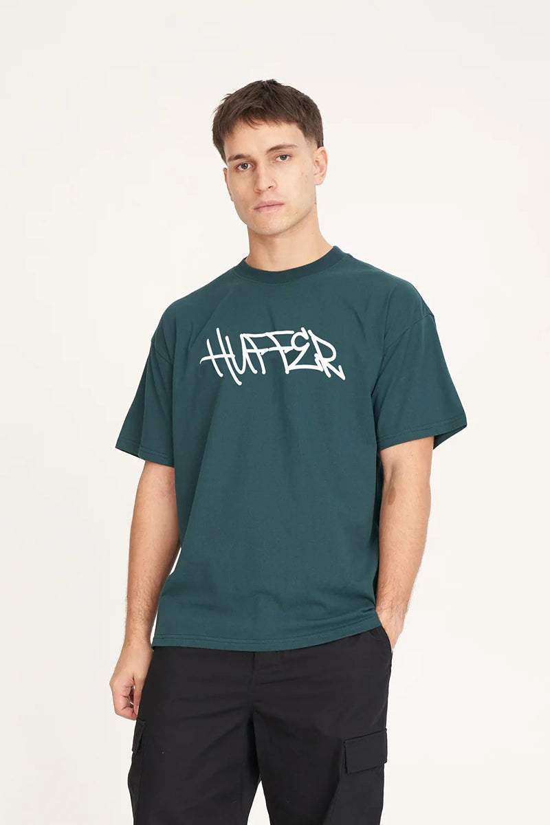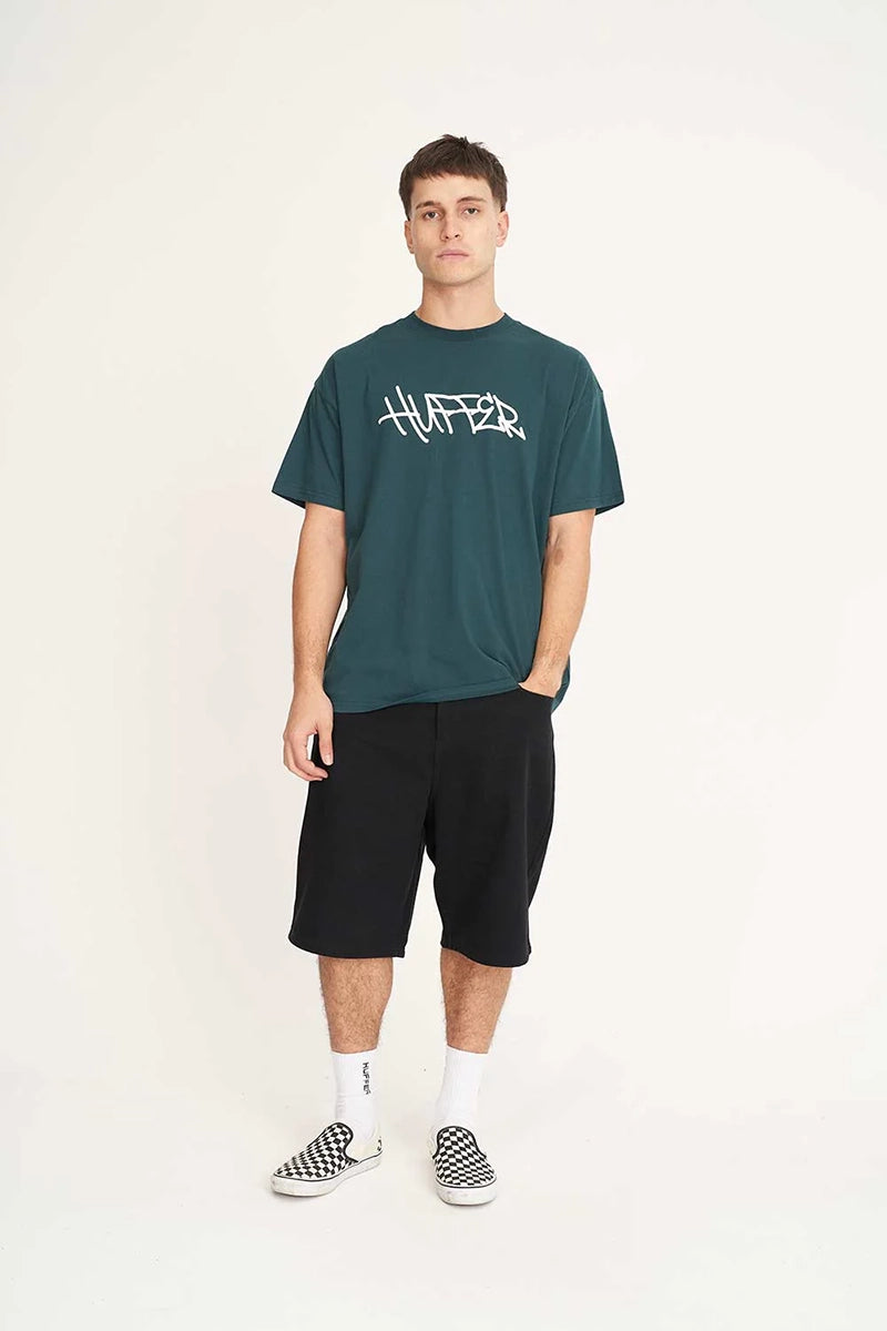 • What you need to know: 220gsm 100% Cotton, 25mm neck rib, premium weight jersey, boxy fit, short sleeve with Huffer branded placement puff print