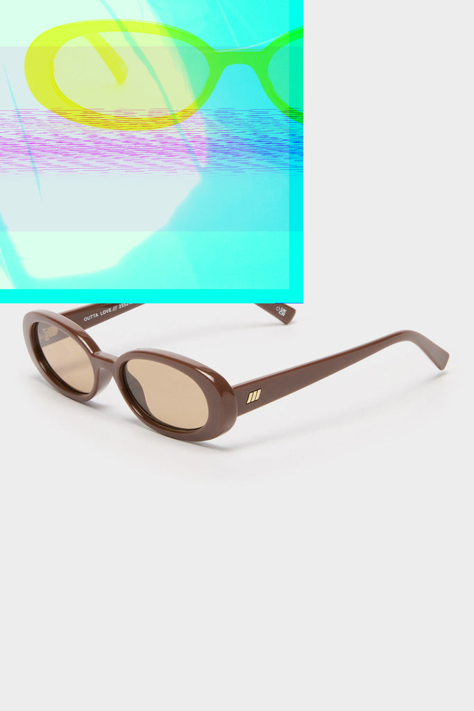 Exuding '90s confidence, our iconic OUTTA LOVE silhouette offers a minimal nineties look. This petite, slimline oval silhouette features a modern flat profile and signature Le Specs gold metal hardware, and is just the right size to complement your face without hiding your best features.
