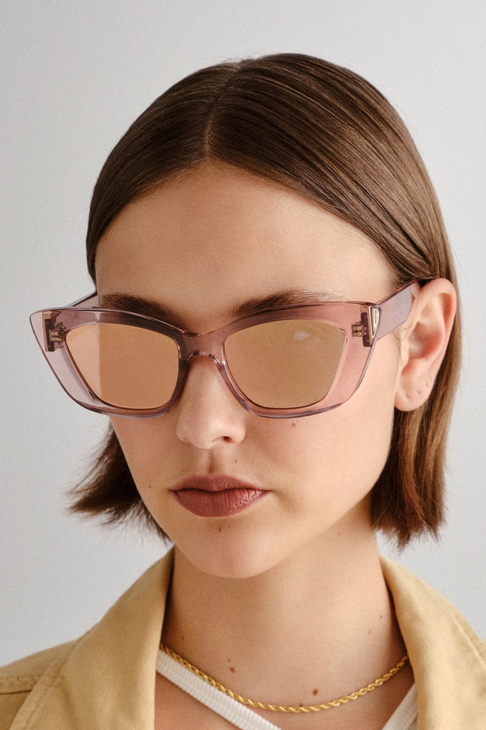 Sharp and confident, Le Specs TRANQUIL TURMOIL frames offer a mid-size fit and everyday look. Finished with a modern, flat profile, these cat eye sunglasses feature bespoke Le Specs geometric stacked hardware.