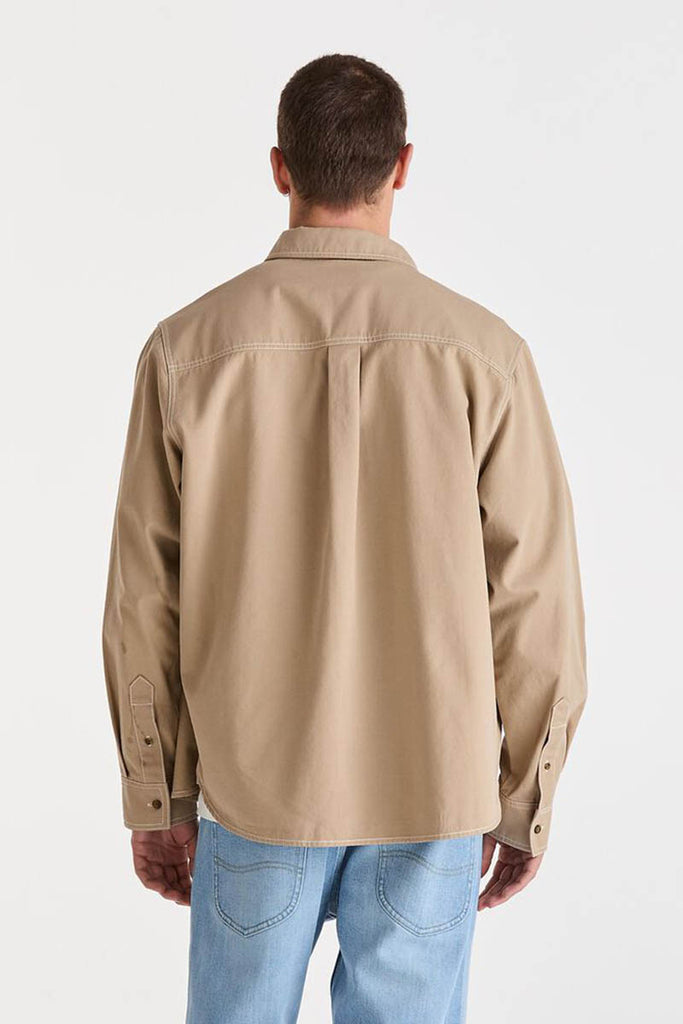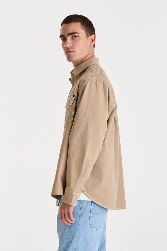 The Dustin Shirt is a relaxed, boxy long sleeve shirt. Crafted in a durable, mid weight cotton twill, this shirt features a twin chest patch pocket with a Lee Lazy 'S' stitch embroidery.