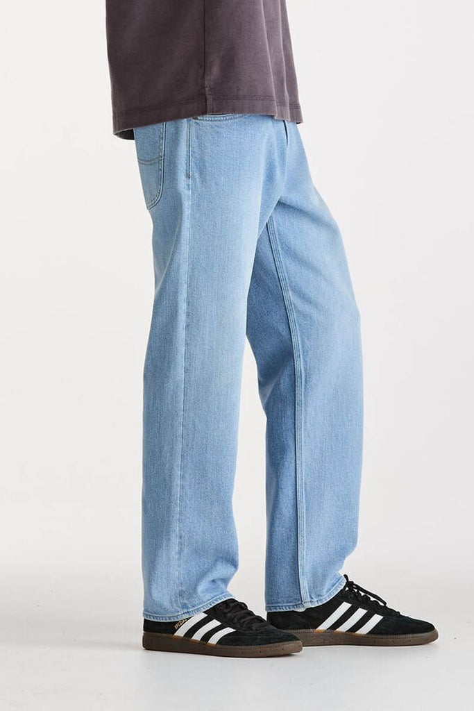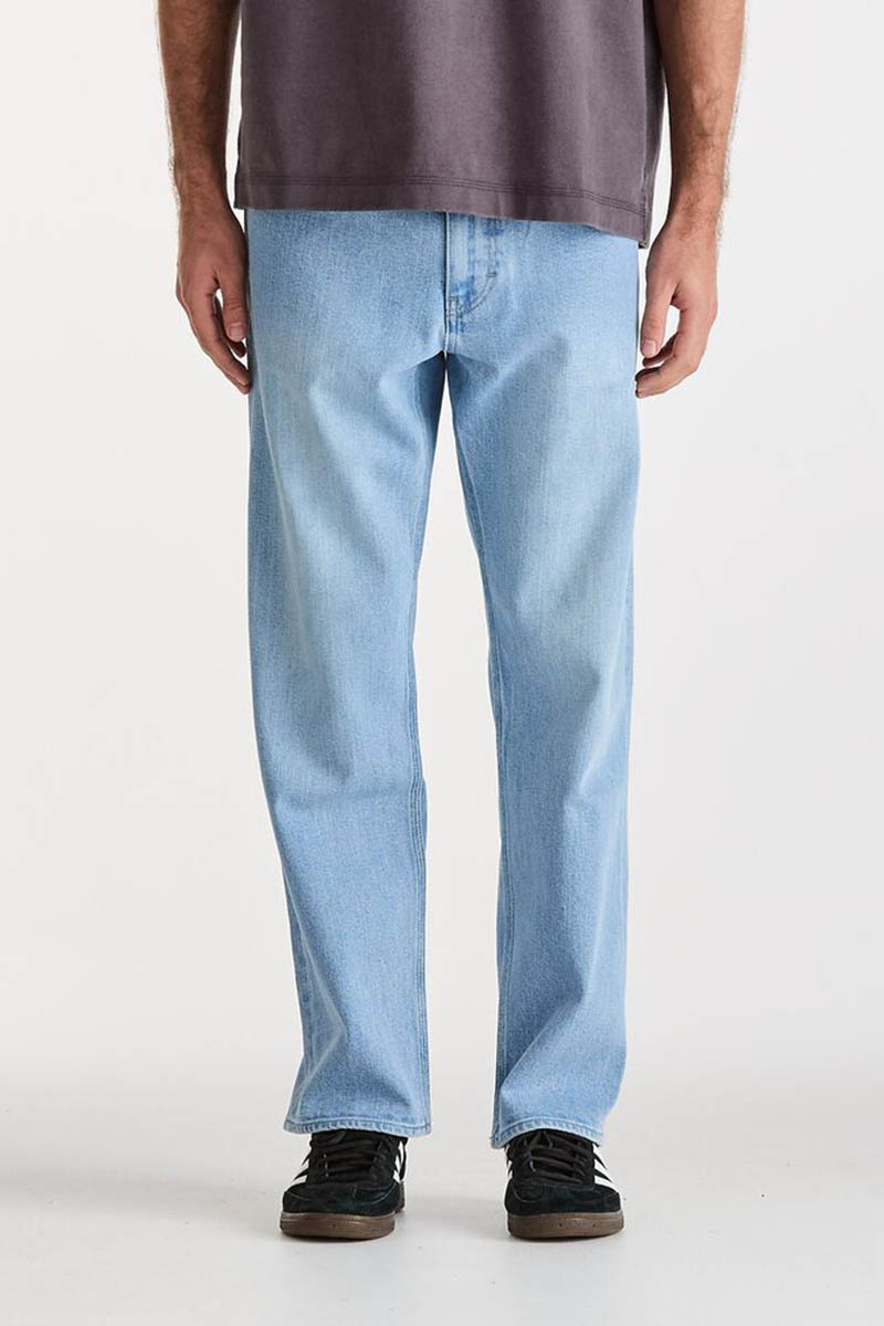The L-Three Jean is our straight fit, sitting low on the hips and relaxed through the leg profile. Designed in a comfort rigid denim, with dual tone stitching and metal hardware. Made in a mid blue wash.