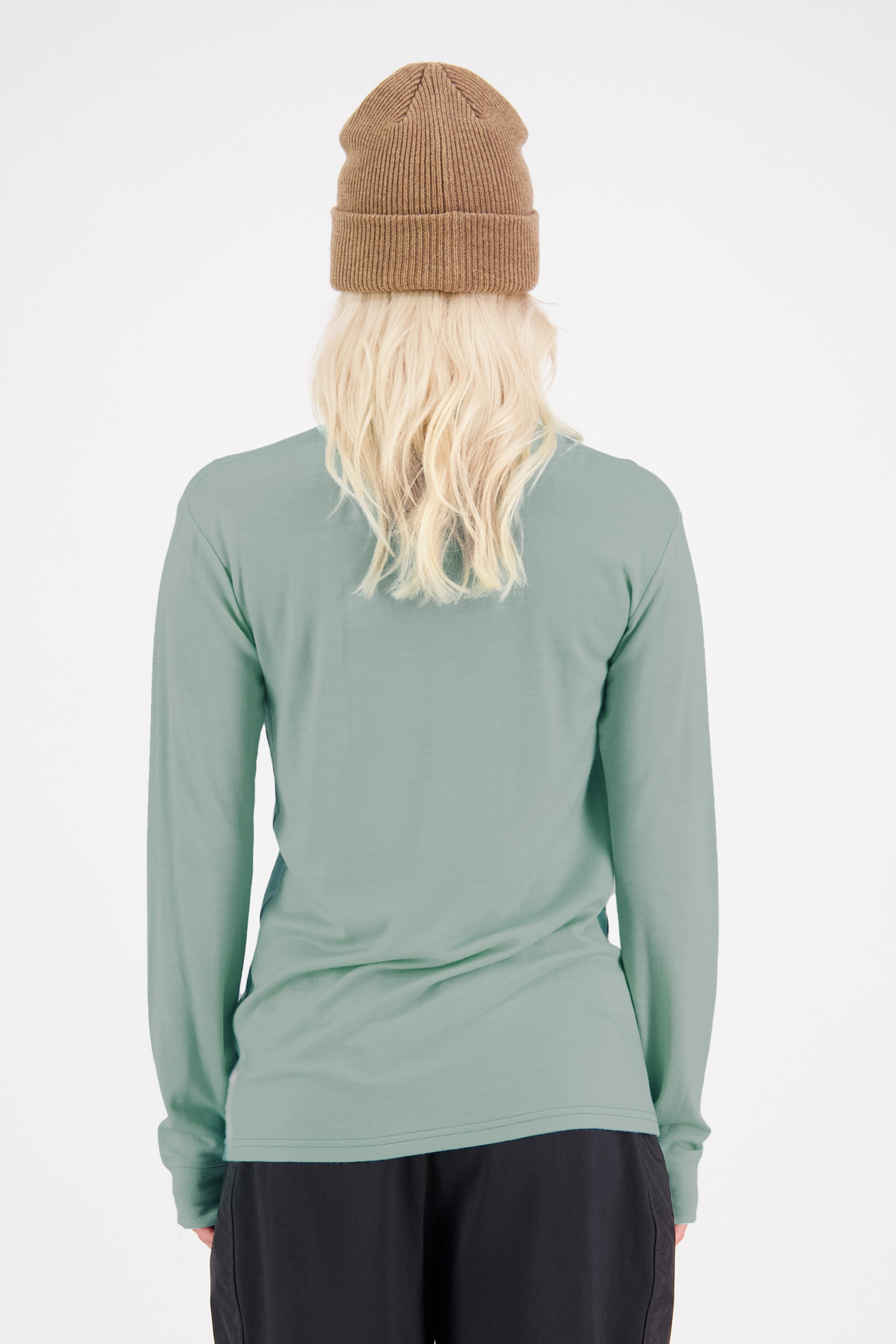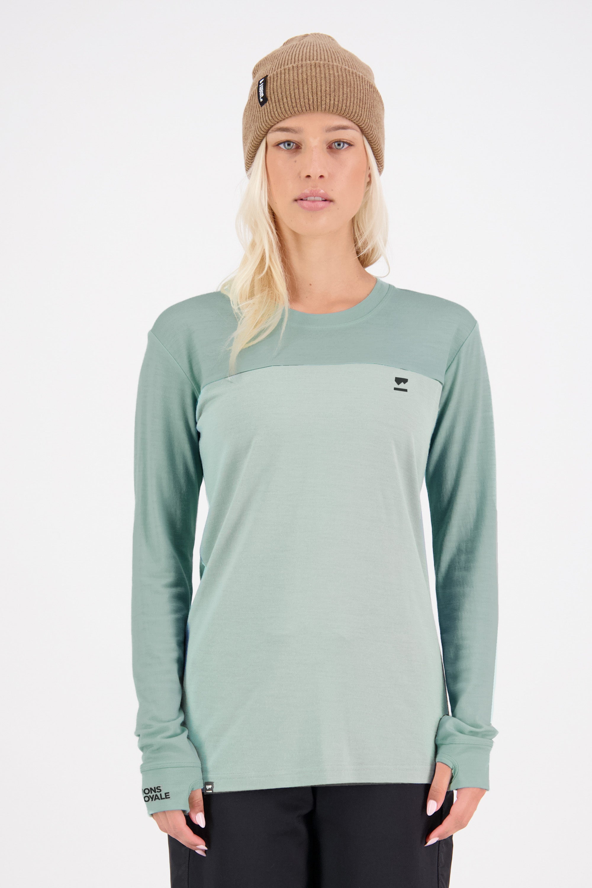 MONS ROYALE Womens Yotei Merino Long Sleeve Logo Glacier Dew