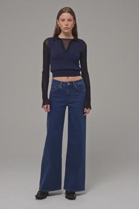 - The Eva Wide is a timeless, tailored wide-leg jean that skims the hips and falls into an elegant A-line