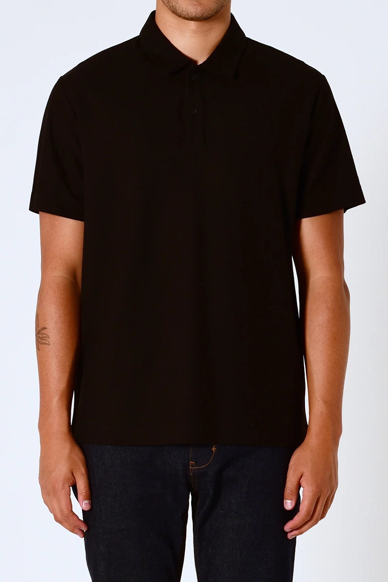 A classic - the black polo. This polo is pique fabric with minimal branding. Style with jeans or chino shorts for a 'i'm comfy but made an effort' look,