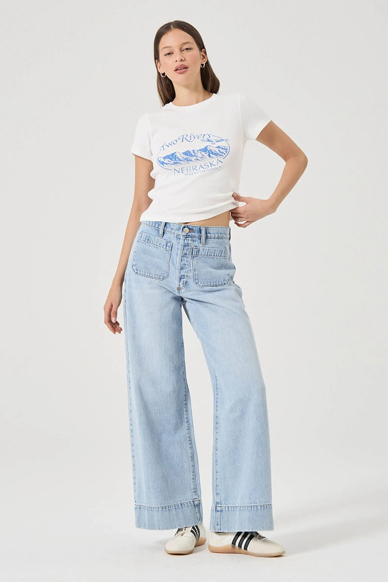 Classic white colourway with Rolla's exclusive front design in contrast baby blue