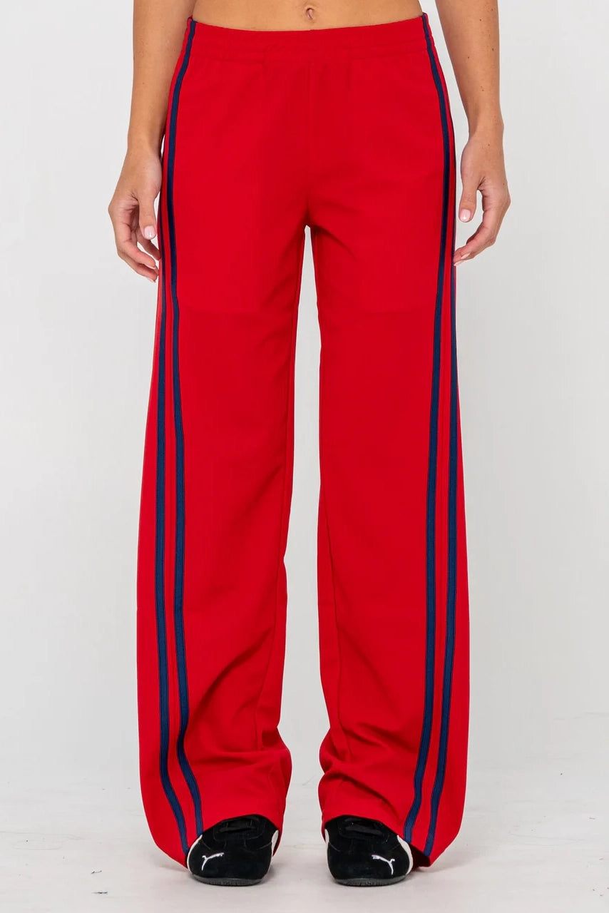 Mid Rise Track Pant With Elasticated Waist And Contrast Tapered Binding. 97% Cotton / 3% Spandex Crepe