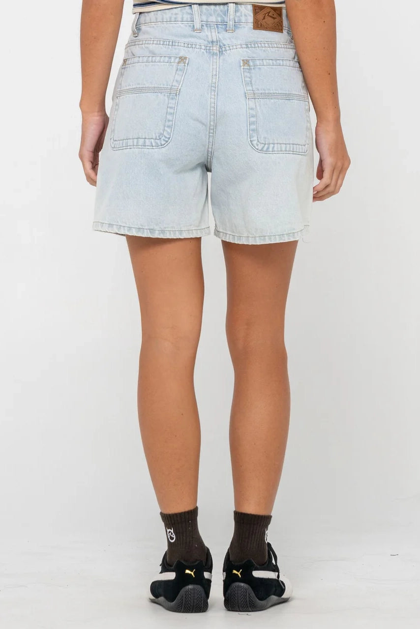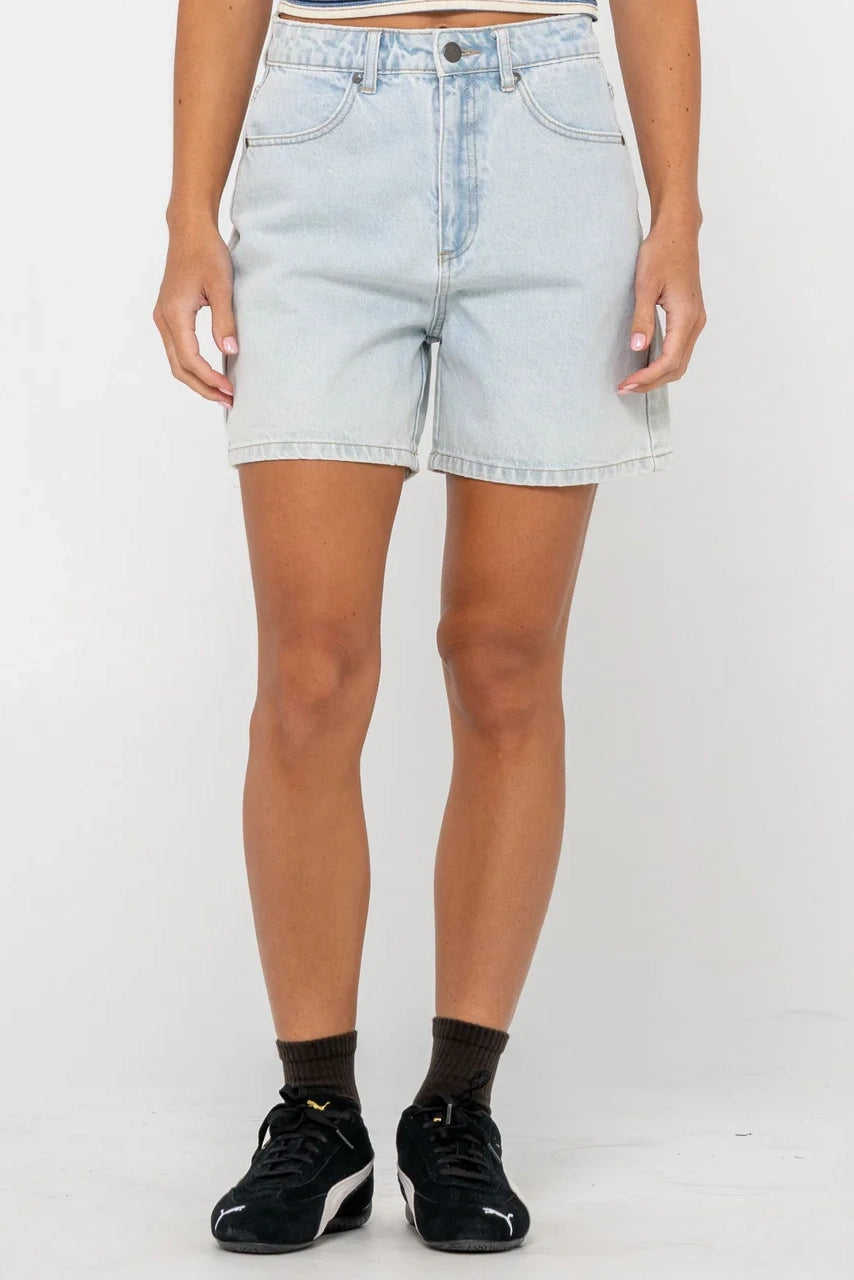 15" Outseam High Waisted Denim Short. 100% Cotton Indigo Denim