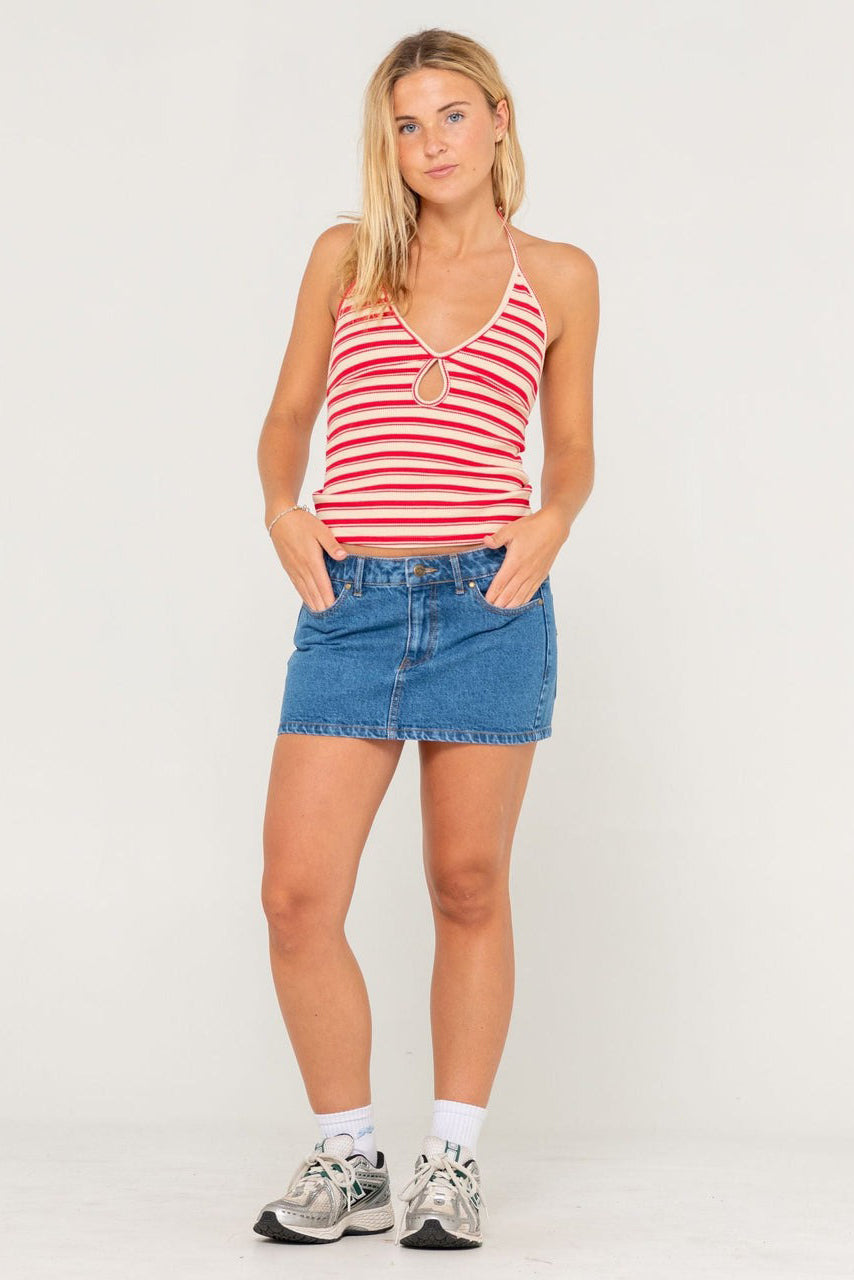 Ribbed Halter Tank Top With Keyhole Front Detail. 95% Cotton / 5% Spandex Cotton Rib