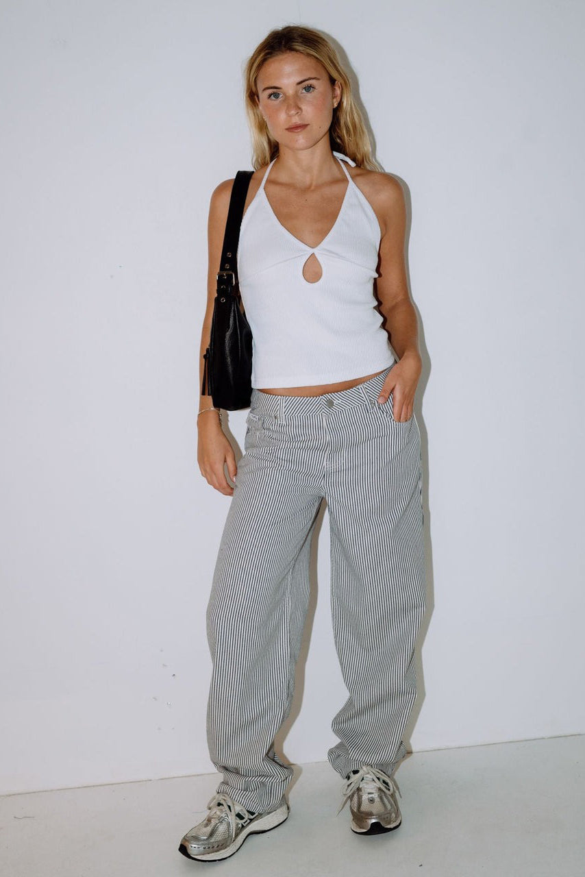 Ribbed Halter Tank Top With Keyhole Front Detail. 95% Cotton / 5% Spandex Cotton Rib