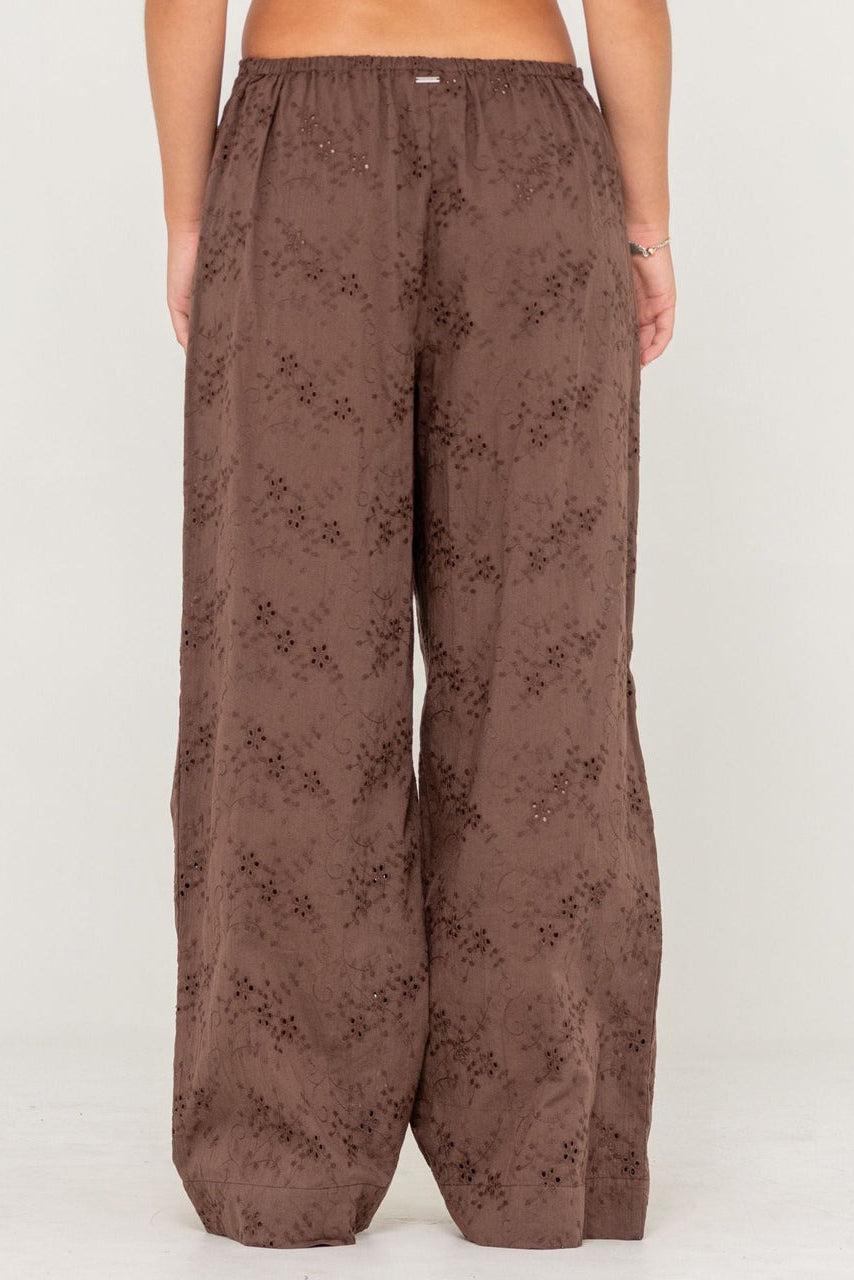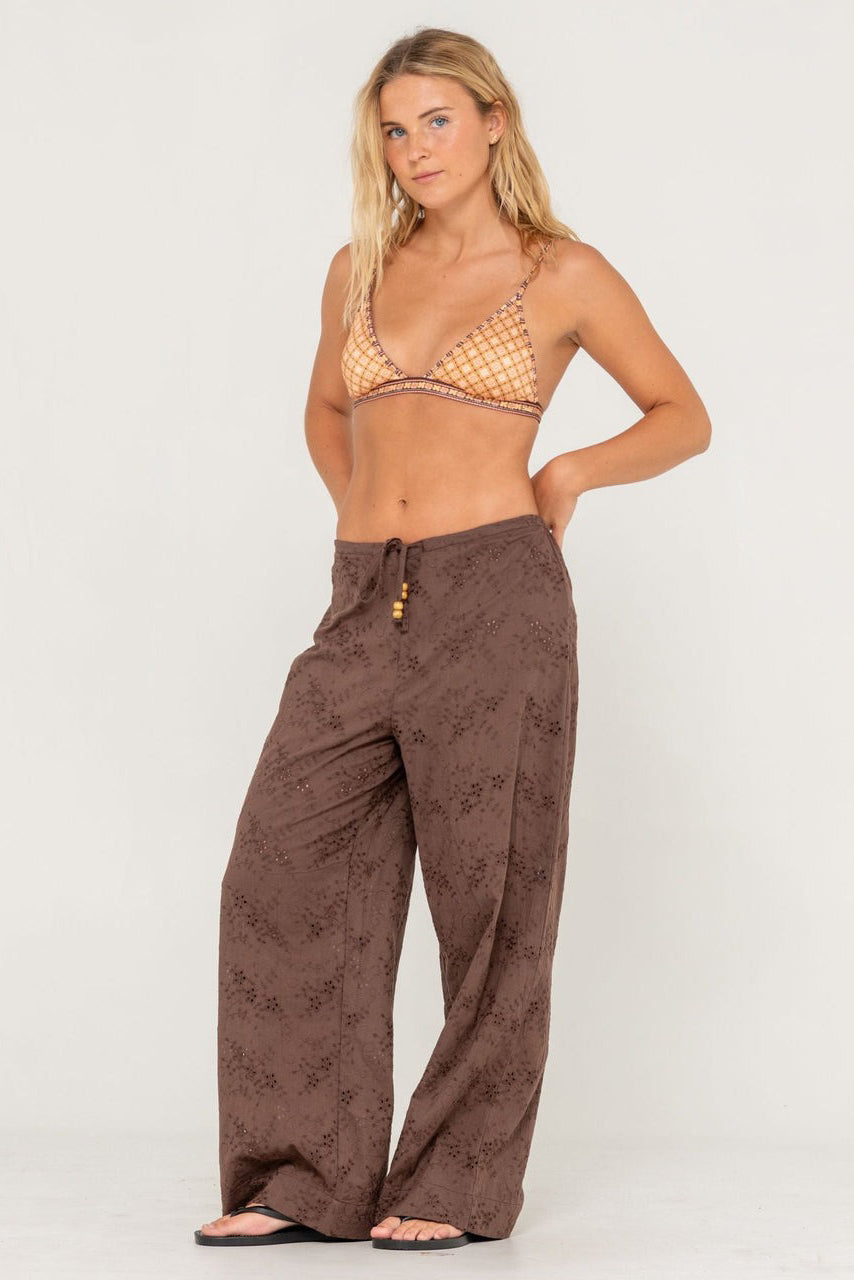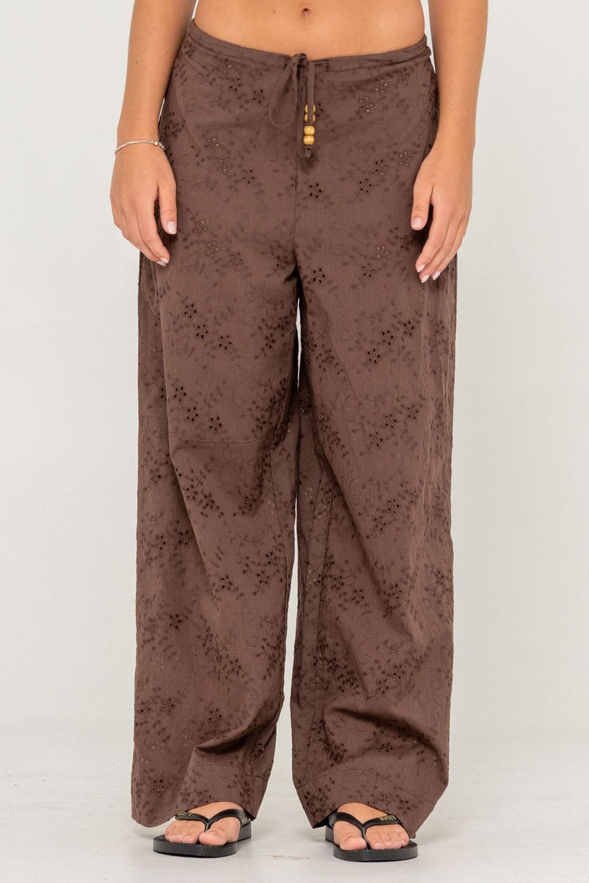 Low-mid Rise Wide Leg Beach Pant With Drawcords And Beading Detail. 100% Cotton Broidery Anglaise