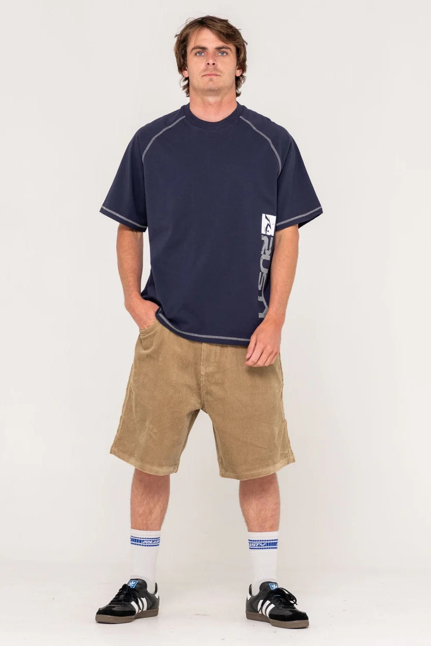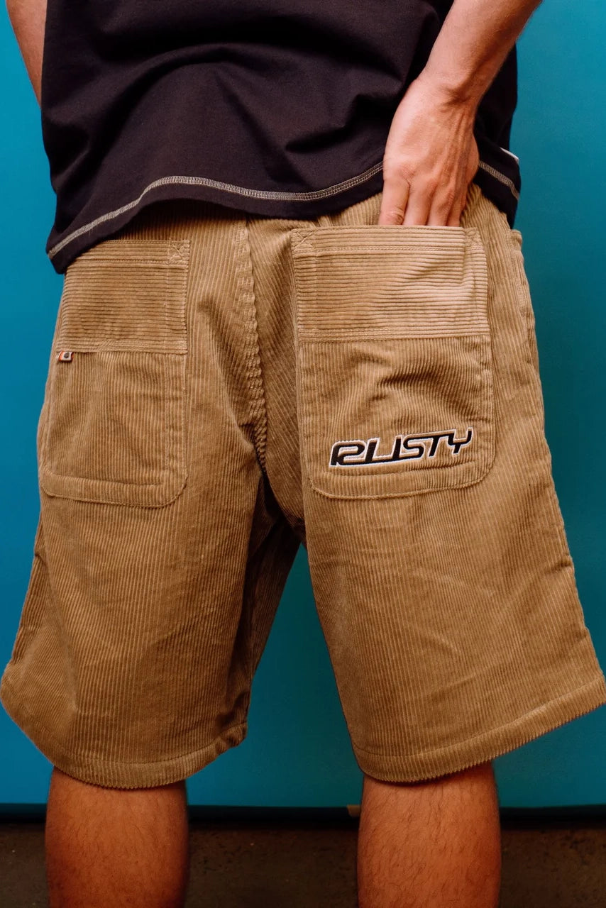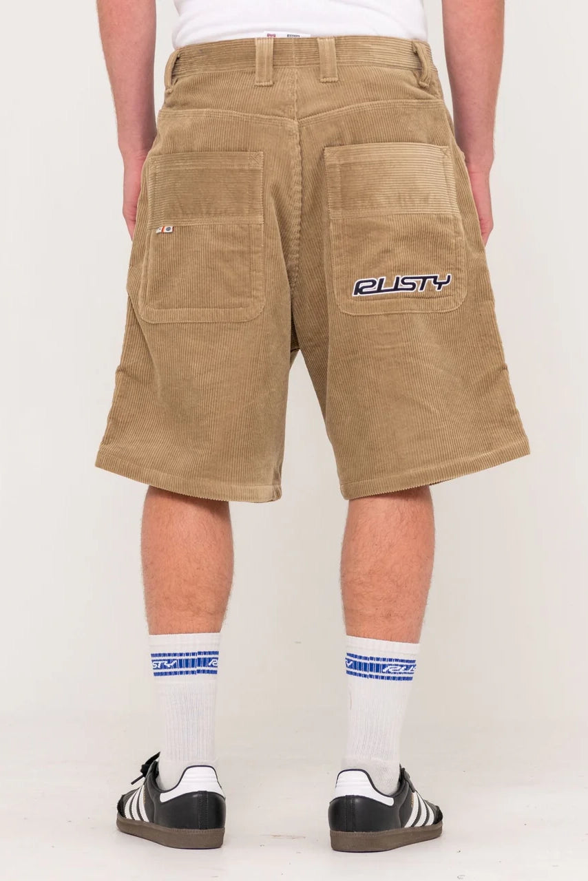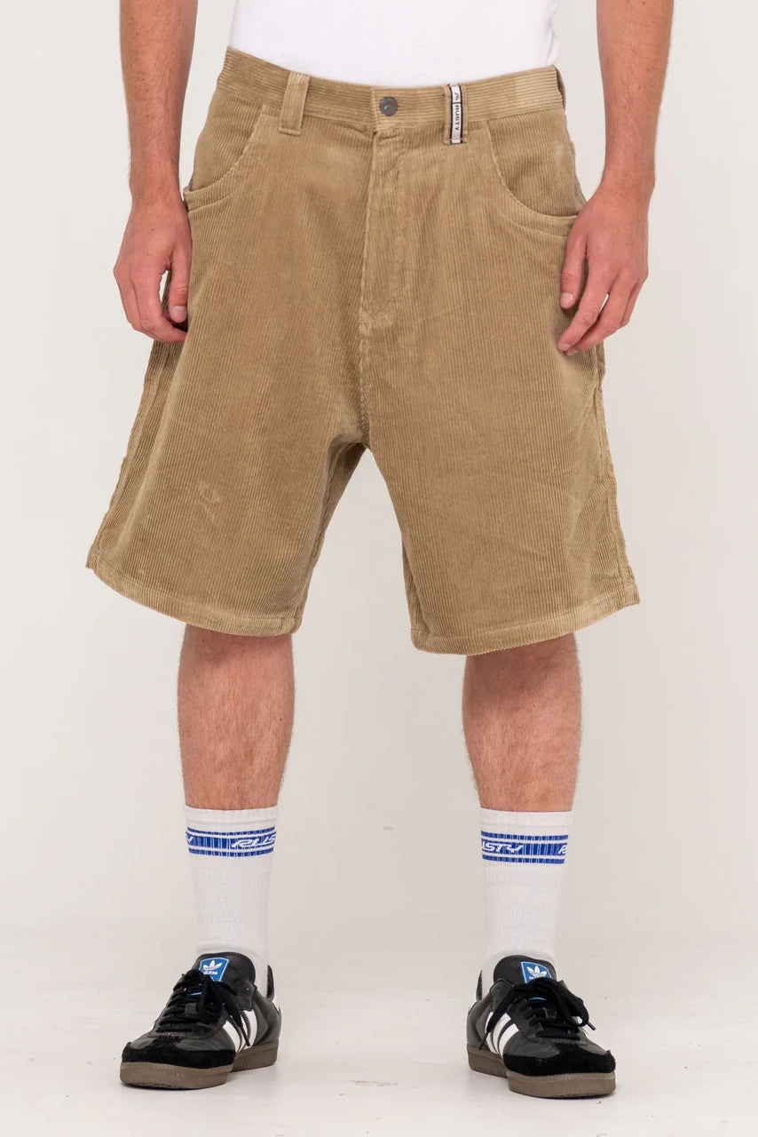 Baggy Fit Fixed Waist Walkshort With Oversized Back Pockets And 22 Inch Outseam. 100% Cotton 8 Wale Corduroy
