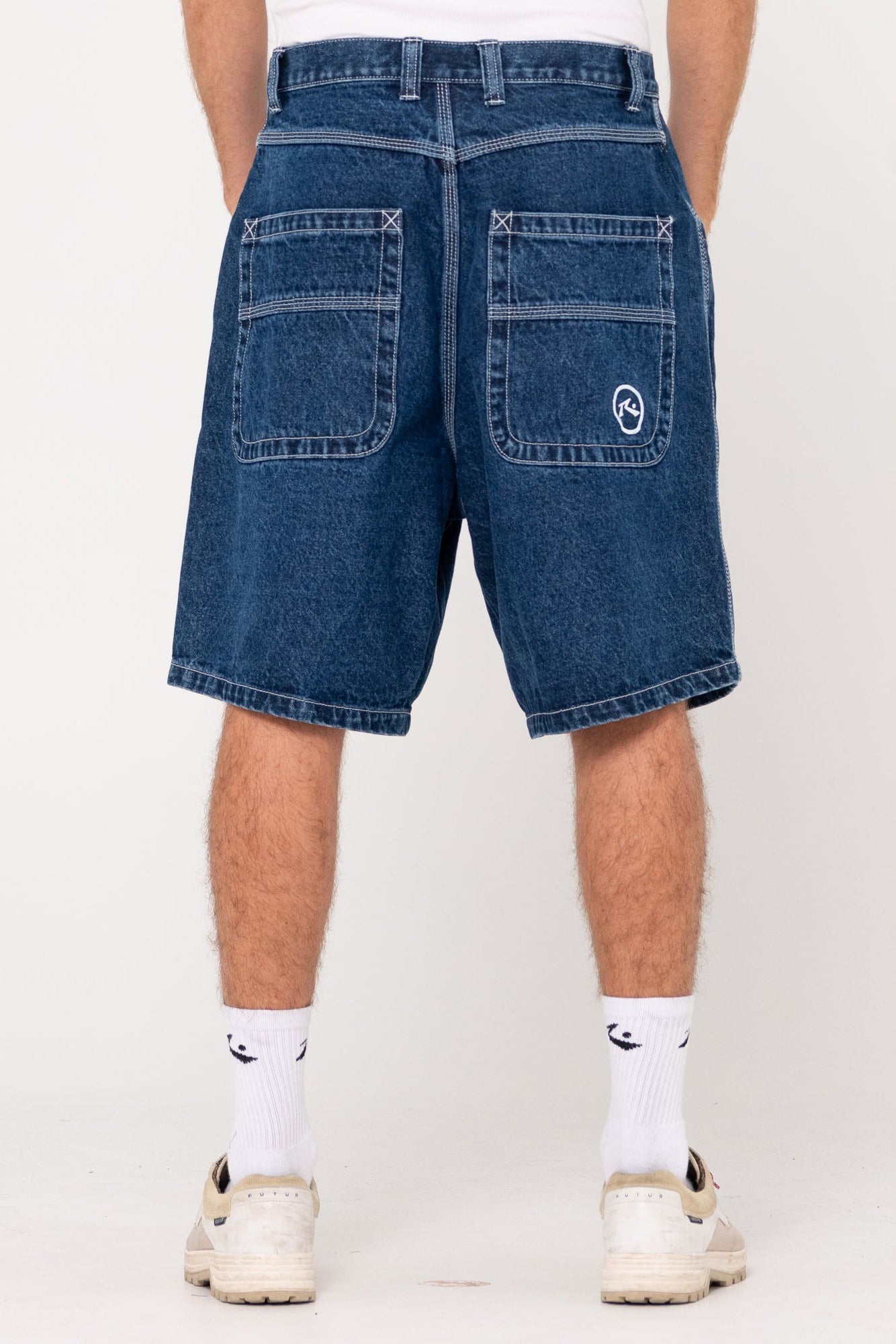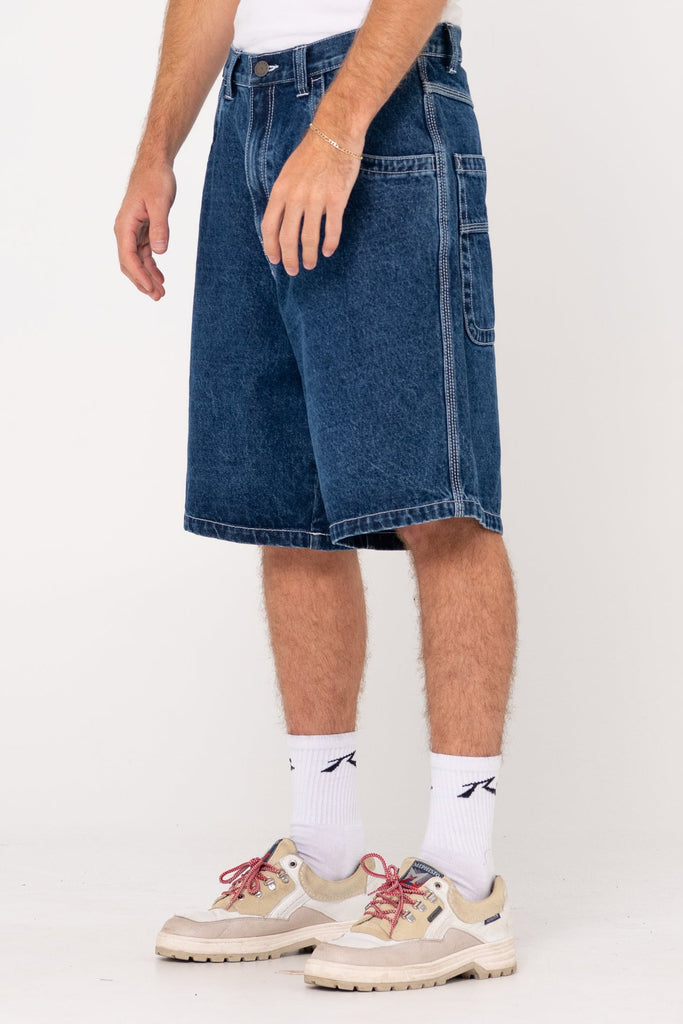 Baggy Fit Walkshort With A 22 Inch Outseam And Pocket Embroidery. Material: Denim - 100% Cotton - 12oz