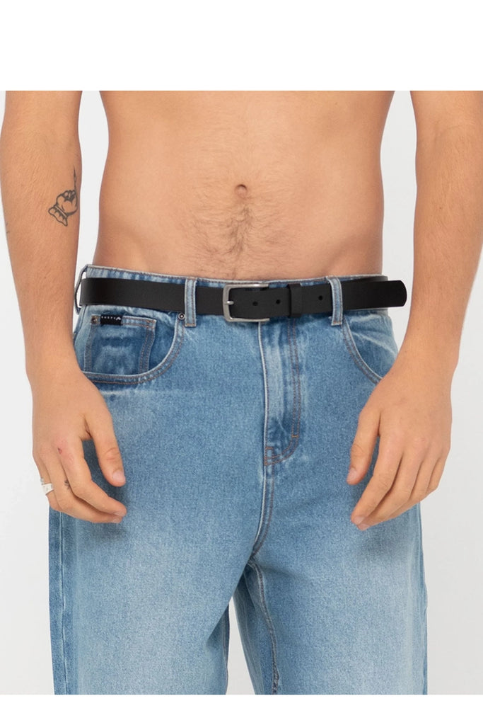 Leather Belt With Rusty Metal Logo Rivet. Stock Full Grain Leather