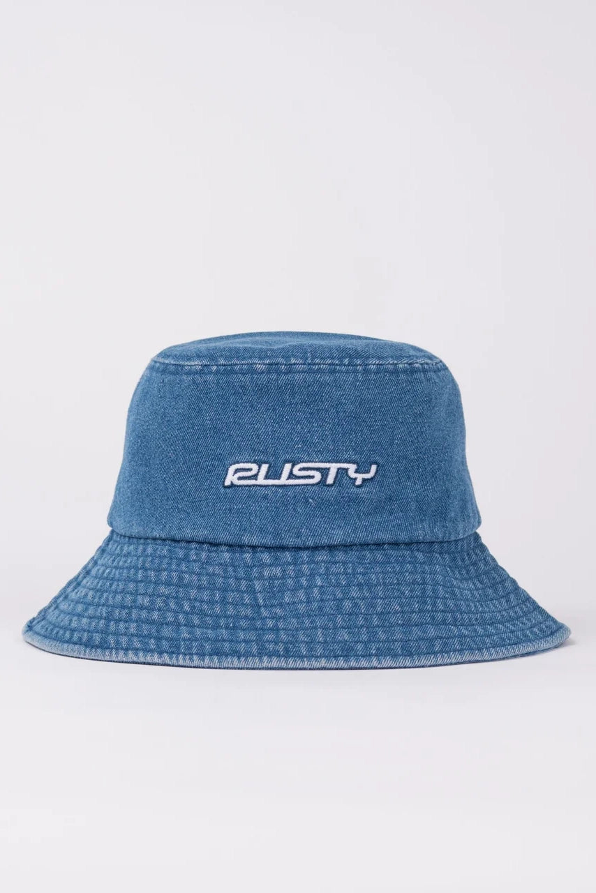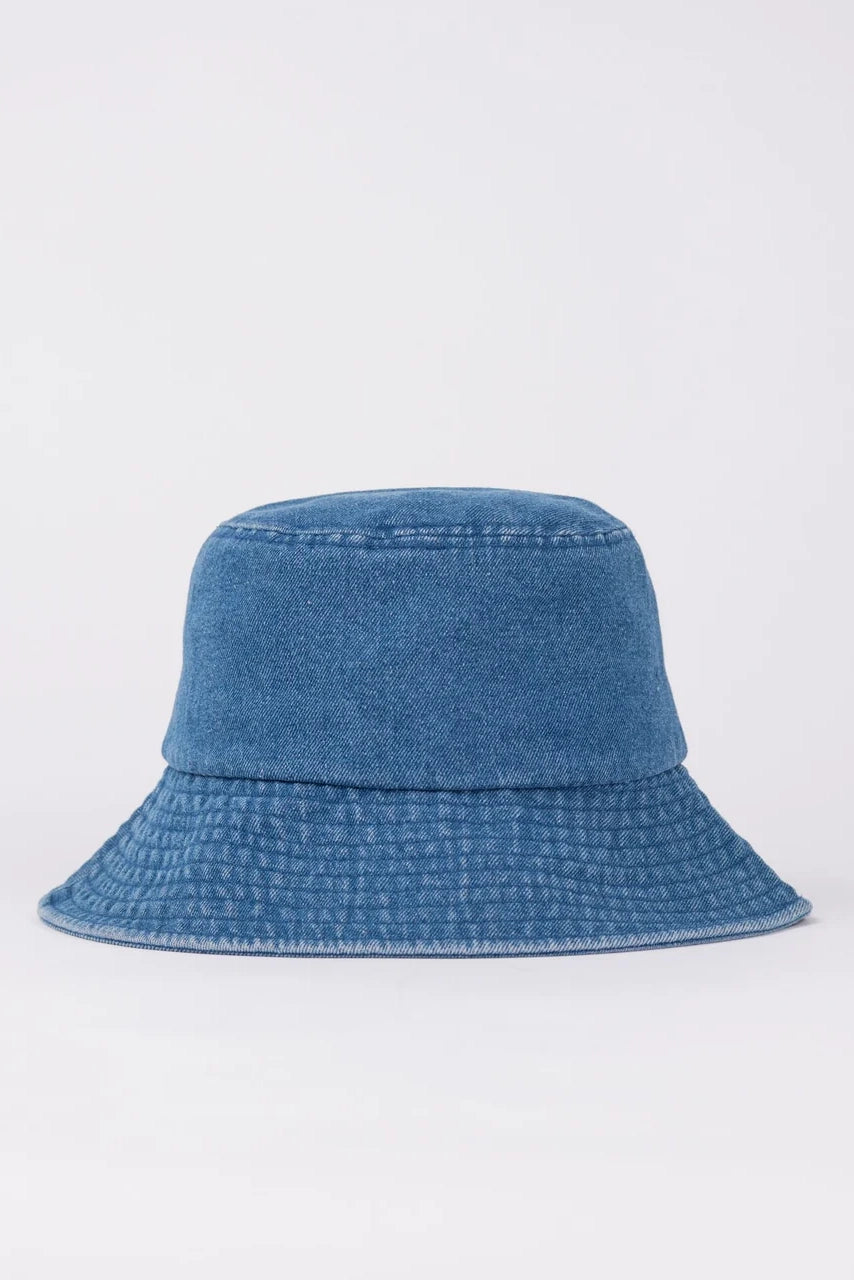 Washed Denim Bucket Hat With Embroidered Heritage Logo And 8cm Sun-smart Brim. Washed Denim
