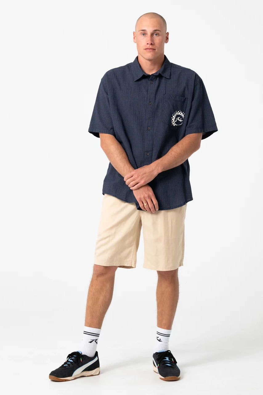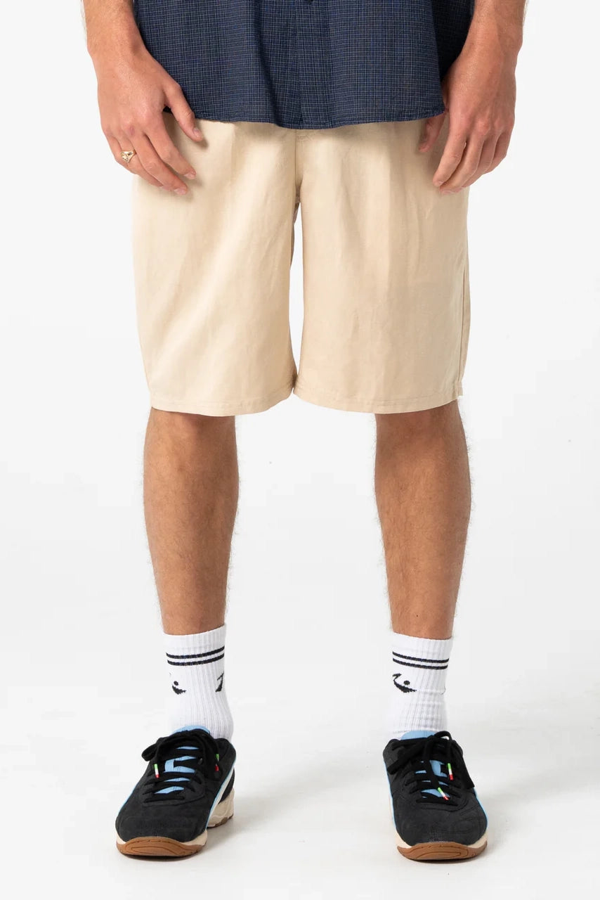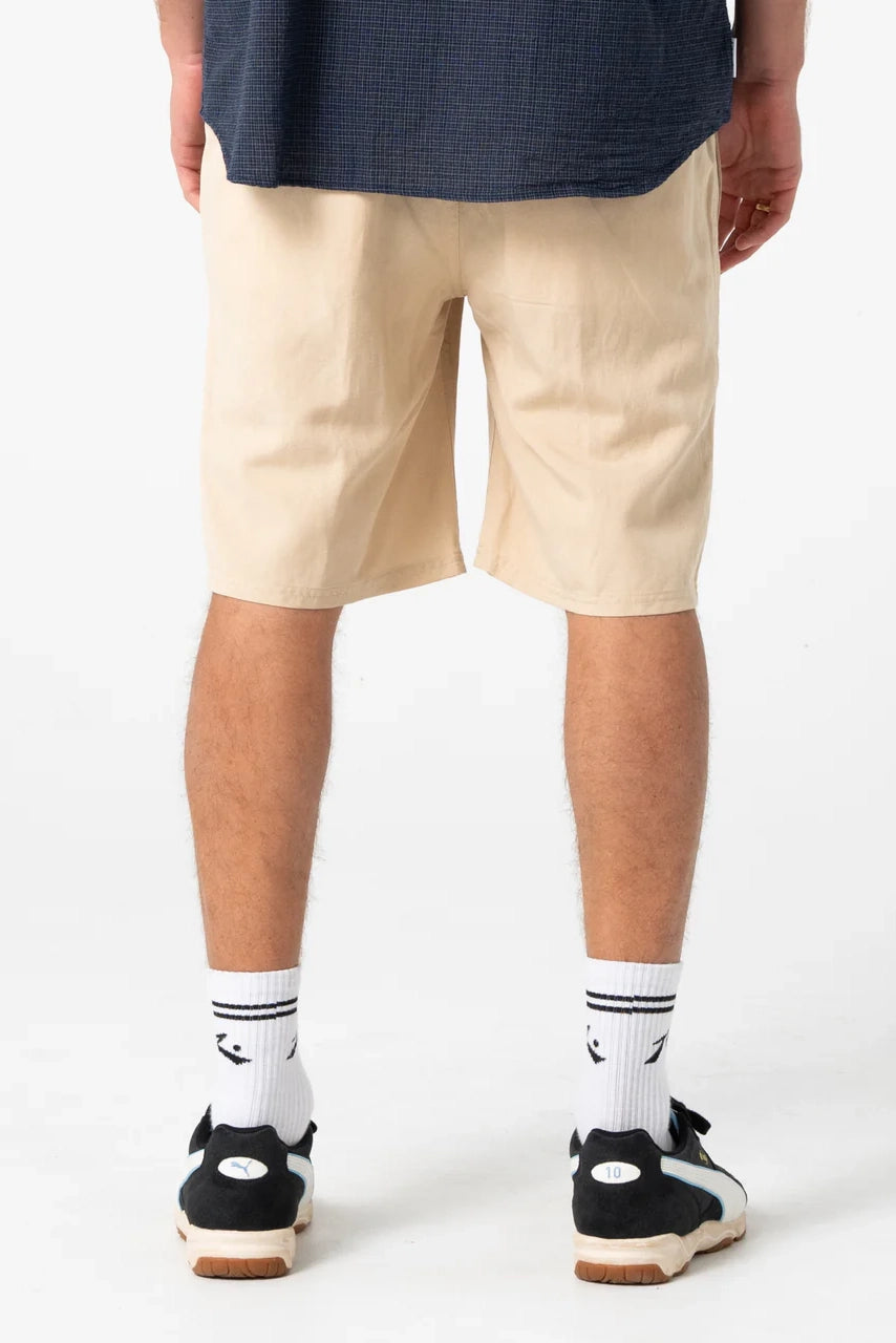 Straight Fit Elastic Waist Walkshort With A 20 Inch Outseam And Silicon Wash. 70% Viscose / 30% Ramie