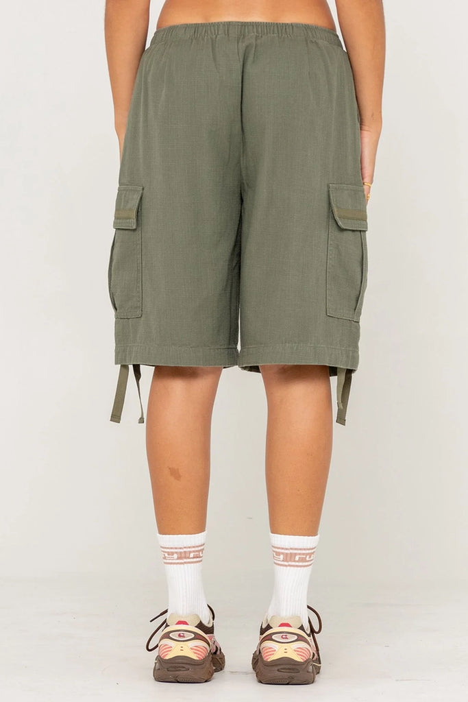 Low Rise Baggy Fit Cargo Short With Elasticated Waist - Drawcords And Cargo Pockets. 100% Cotton