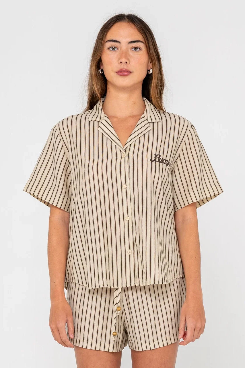 Short Sleeve Box Fit Button Up Shirt. 85% Rayon / 15% Polyester
