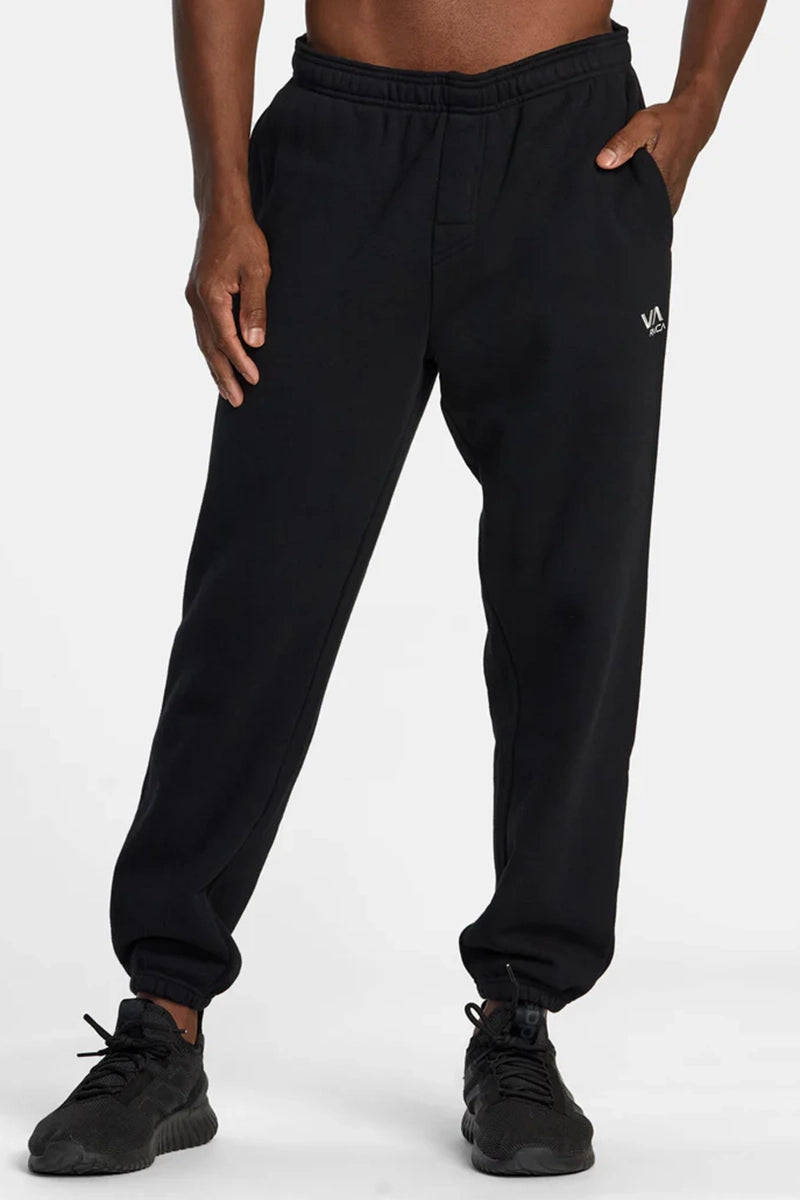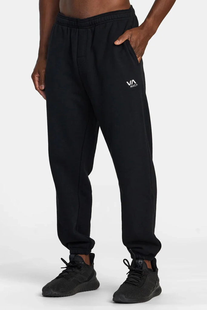 Experience comfort and style with rvca's VA essential joggers, crafted from soft combed cotton and french terry fabric in a relaxed fit with an elastic waist, side pockets, and a single back pocket. Your go-tos for training, recovery days, and everything in between. featured here in the indigo colorway.