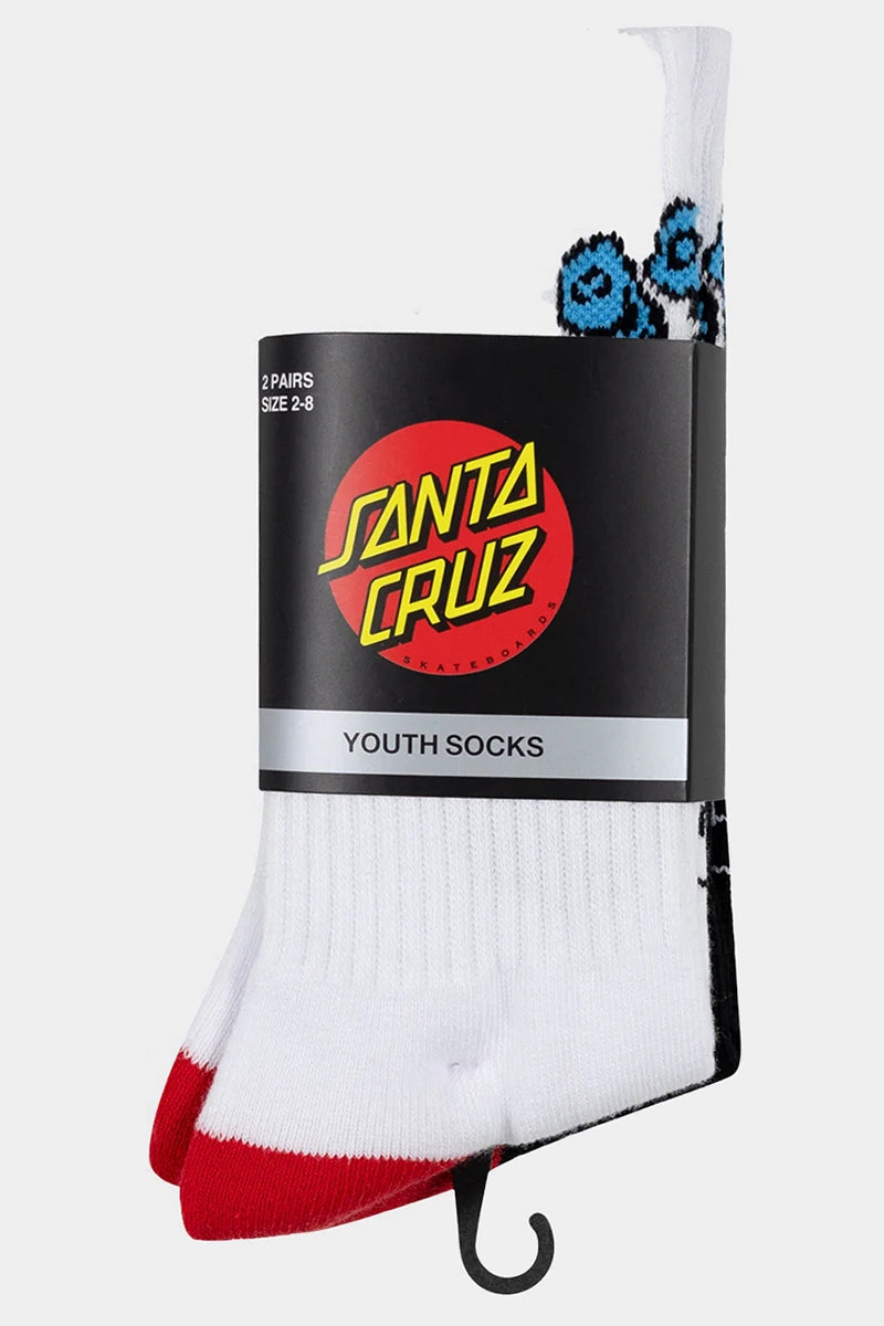 Boys Santa Cruz 2 pack of crew socks featuring a jacquard knit of the Opus Screaming Hand artwork.