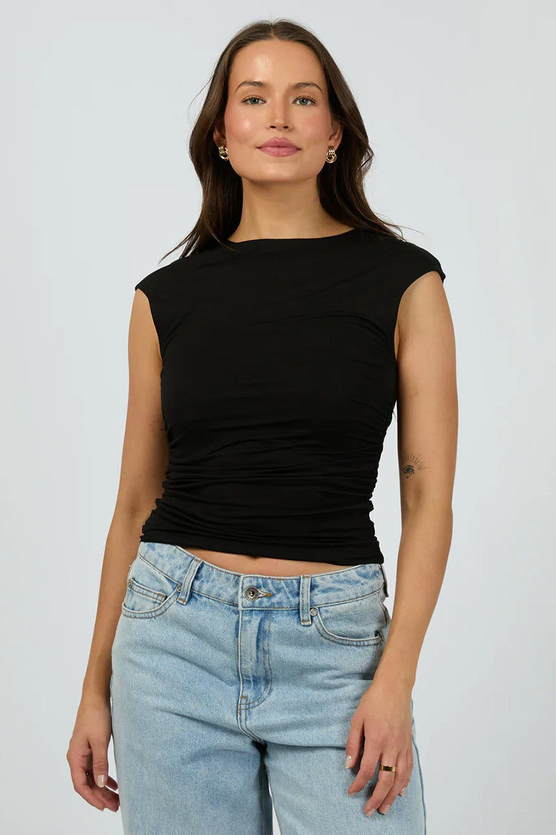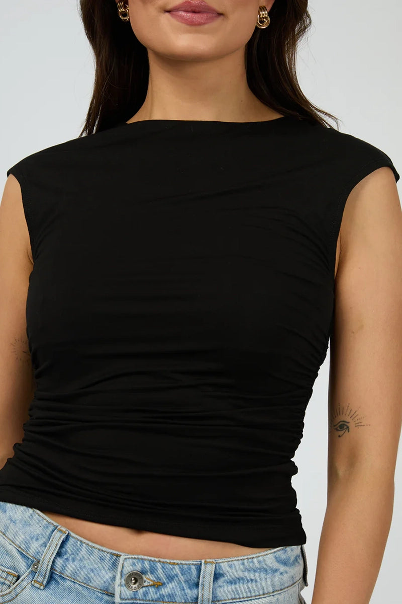 Introducing the Evie Ruched Top, your new favourite work-to-weekend piece. Crafted from a soft and stretchy fabric, this style features a boat neck design and ruching at the side seams to ensure both comfort and style. Pair back with tailored pants and your favourite boots for a chic and sophisticated look.