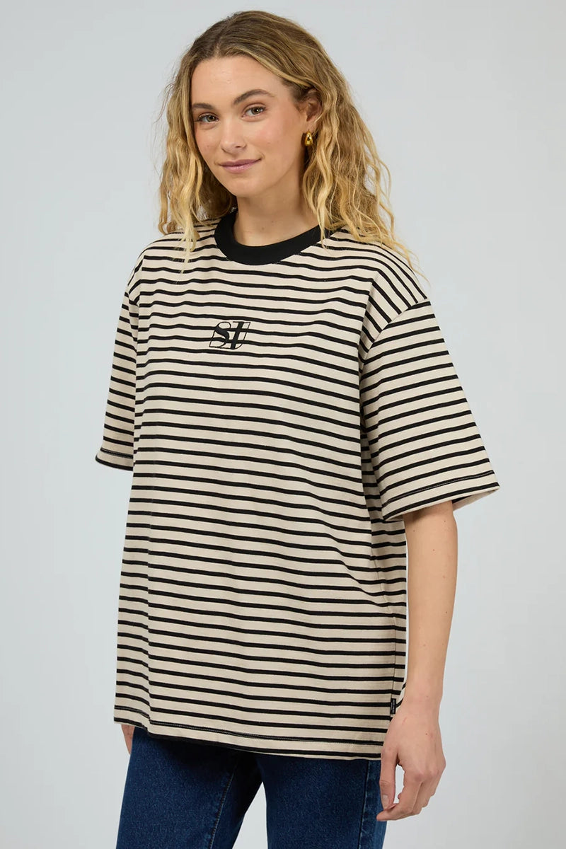 Elevate your basics with our Silent Stripe S/S Tee. Made from a soft heavy weight jersey this tee has an oversized fit that keeps its structure as well as a branded embroidery and yarn dyed stripe design. From walks with friends to work, this tee can take you anywhere.
