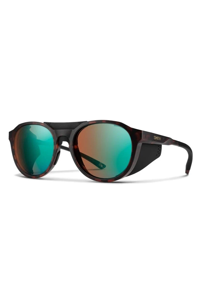 Where snow falls, you follow. On summit bids or high-speed descents, the Smith Venture sunglasses provide much-needed eye protection in alpine environments. They're our take on glacier glasses, with removable side shields that protect against light reflecting off snow, rock and ice. ChromaPop™, lens technology offers a terrain-boosting view of every wind drift and crevasse. Autolock hinges make for easy on and off when one of your hands is occupied with an ice axe or ski poles. And then there are the iconic round frames that look just as good glissading down a snowfield as relaxing post adventure.