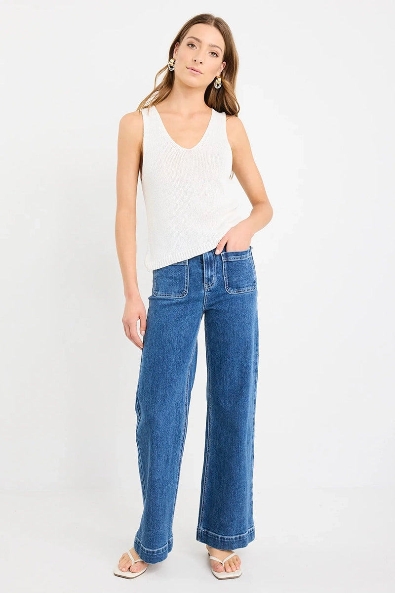 The Settler ivory vest top is a fresh take on effortless layering. With its sleeveless cut and soft V-neckline, this knit blends comfort and polish in one versatile piece. Lightweight and breathable, it pairs beautifully with denim for everyday ease or styled under a blazer for elevated high-low dressing.