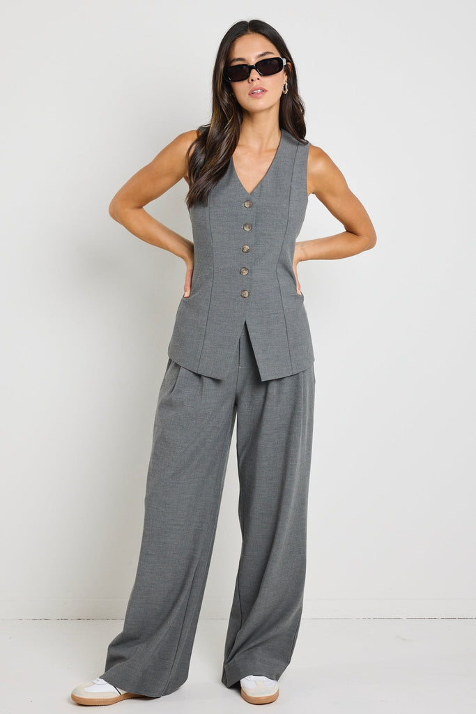 Tailored to perfection, the Sophisticated Charcoal Pants offer effortless elegance with a modern edge. Featuring a structured high-rise fit and subtle pleat detailing, these trousers bring timeless style to your wardrobe. Whether you're heading to the office or dressing up for a night out, their classic silhouette ensures a refined yet relaxed vibe.
